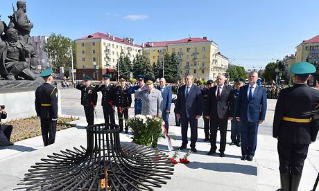 Участники торжественного митинга почтили минутой молчания память воинов-пограничников, погибших при исполнении служебных обязанностей по защите и охране государственной границы.