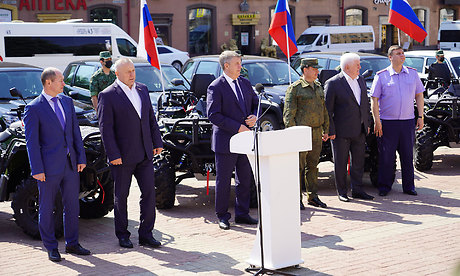 Сегодня мы собрались здесь в преддверии праздника для того, чтобы вручить технику для Министерства обороны и погранслужбы. Техника, которая находятся здесь, была приобретена Правительством Брянской области по просьбе ваших руководителей для того, чтобы она помогала вам более качественно выполнять задачи по охране государственной границы, нашей страны и жителей Брянской области.