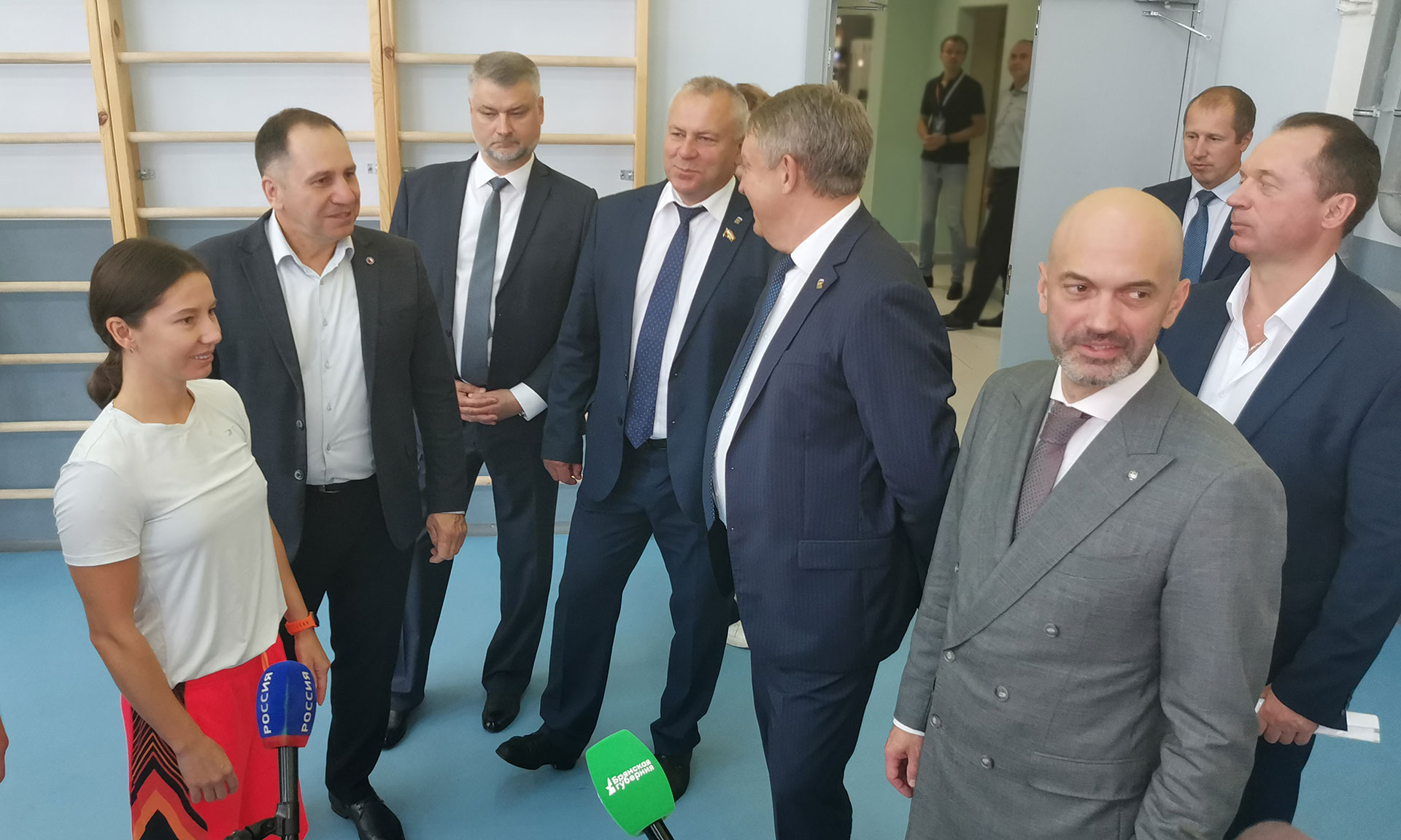 Первый заместитель Министра спорта Российской Федерации Азат Кадыров видел Дворец единоборств еще во время строительства, и сегодня смог профессиональным взглядом оценить, как объект эксплуатируется. Дворец единоборств — гордость нашей области, прекрасное спортивное сооружение, которое позволяет заниматься спортом в современных условиях не только профессиональным спортсменам, но и всем любителям спорта, здорового образа жизни, детям, молодежи и взрослым. Азат Кадыров и Губернатор Александр Богомаз пообщались с юными спортсменами, тренерами, посмотрели, как проходят тренировки.