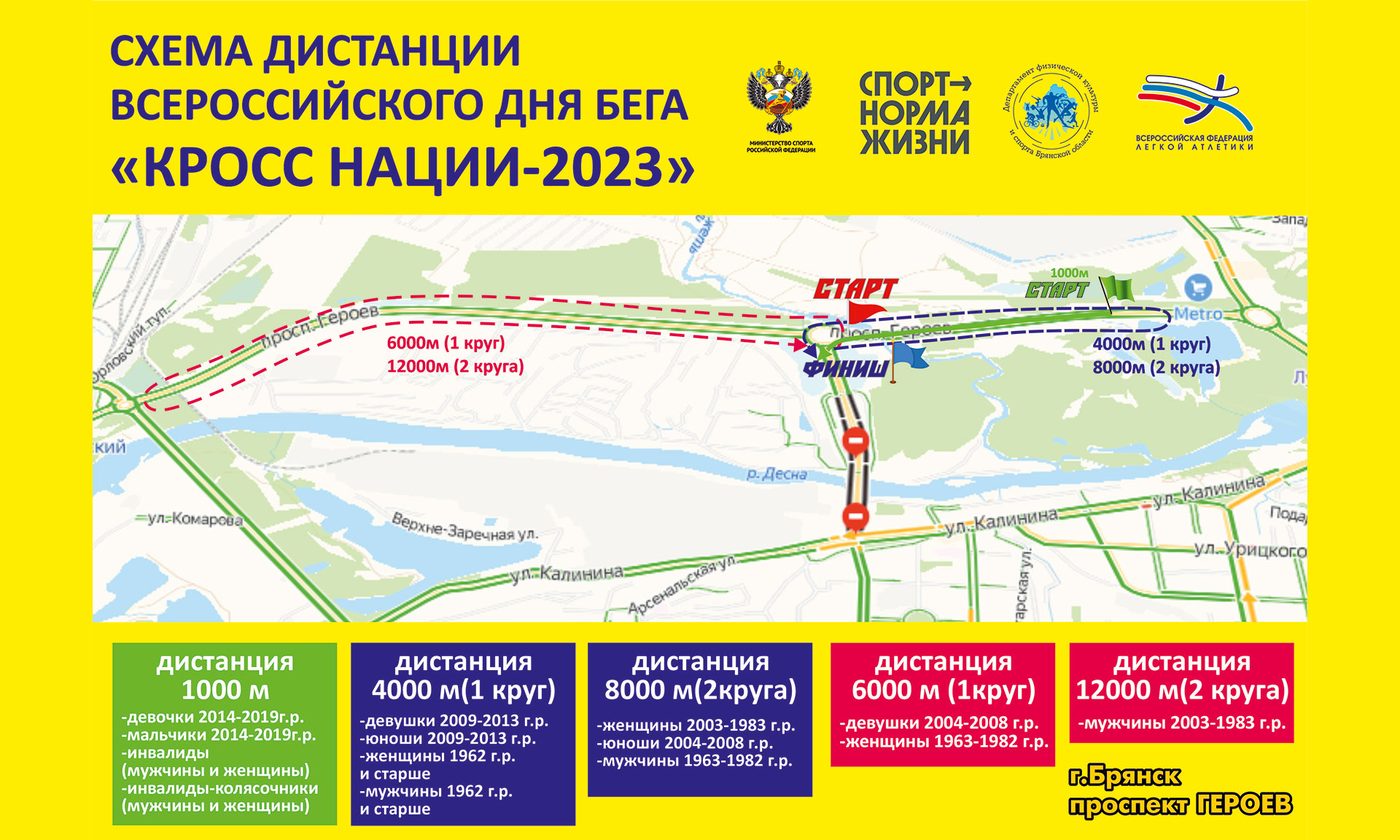 Программа проведения Всероссийского дня бега «Кросс нации — 2023» в Брянске.