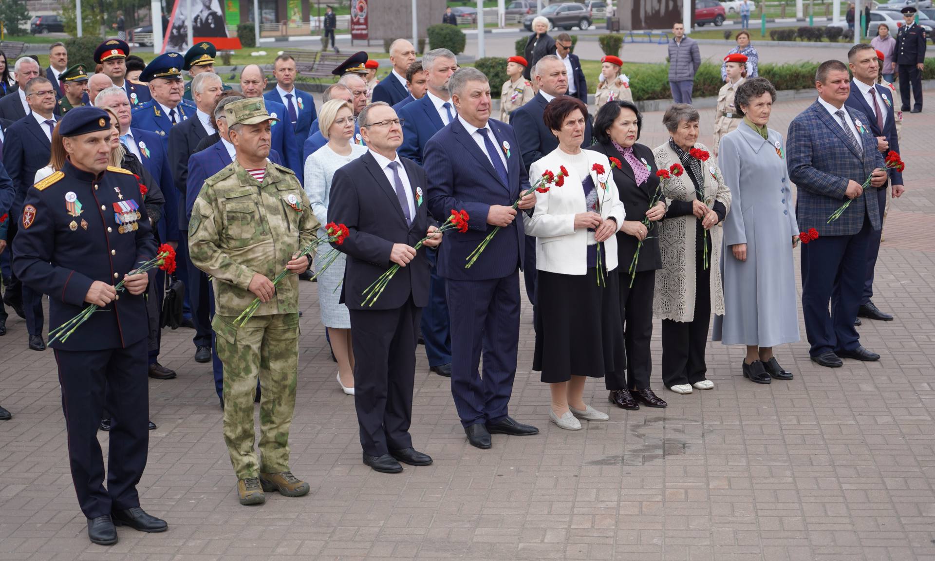 На площади Воинской Славы, мемориале на площади Партизан и воинском захоронении на кладбище в Советском районе Брянска состоялись торжественные мероприятия в рамках празднования 80-й годовщины освобождения Брянщины от немецко-фашистских захватчиков. В знак памяти и благодарности воинам и партизанам, победителям в Великой Отечественной войне 1941–1945 годов, гирлянду и цветы к Вечному огню памяти народной возложили заместитель полномочного представителя Президента Российской Федерации в Центральном федеральном округе Сергей Нештенко, Губернатор Брянской области Александр Богомаз, командующий Центральным округом Федеральной службы войск национальной гвардии, генерал полковник Александр Попов, Герой Российской Федерации Александр Постоялко, Герой Российской Федерации Андрей Фроленков, председатель Брянской областной Думы Валентин Суббот, главный федеральный инспектор по Брянской области Андрей Дьячук, сенаторы Федерального Собрания Российской Федерации Галина Солодун и Вадим Деньгин, депутаты Государственной Думы Федерального Собрания Российской Федерации Артем Туров, Николай Валуев, Николай Алексеенко, Николай Щеглов, председатель Брянского областного суда Александр Курганов, председатель Арбитражного суда Брянской области Евгений Егоров, прокурор Брянской области Александр Войтович, начальник управления ФСБ России по Брянской области Сергей Воронин, начальник управления МВД России по Брянской области Владислав Толкунов, руководитель следственного управления Следственного комитета Российской Федерации по Брянской области Максим Лукичев, начальник управления Федеральной службы войск национальной гвардии Российской Федерации по Брянской области Иван Ванчугов, начальник главного управления МЧС России по Брянской области Вадим Уваркин, временно исполняющий обязанности начальника пограничного управления ФСБ России по Брянской области Амир Амиров, начальник Центра специальной связи и информации Федеральной службы охраны Российской Федерации в Брянской области Олег Бельский, руководитель управления Федеральной службы судебных приставов по Брянской области — главный судебный пристав Брянской области Елена Бывшева, начальник управления ФСИН России по Брянской области Сергей Герасимов, начальник Брянской таможни Сергей Санакоев, руководитель управления ФНС России по Брянской области Андрей Маркелов, военный комиссар Брянской области Ильфат Абзалов, руководители и заместители руководителя исполнительных комитетов, руководители судебных органов Брянской области, прокуратуры Брянской области, правоохранительных органов и силовых структур Брянской области, заместители Губернатора Брянской области, депутаты Брянской областной Думы, руководители города Брянска, представители Брянской епархии, руководители общественных организаций, почетные гости из Республики Беларусь, Абхазии, Луганской Народной Республики, Республики Дагестан, Орловской, Липецкой и Курской областей, руководители органов исполнительной власти Брянской области, представители политических партий и общественных объединений, студенты и преподаватели Брянских вузов и ссузов.