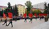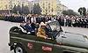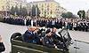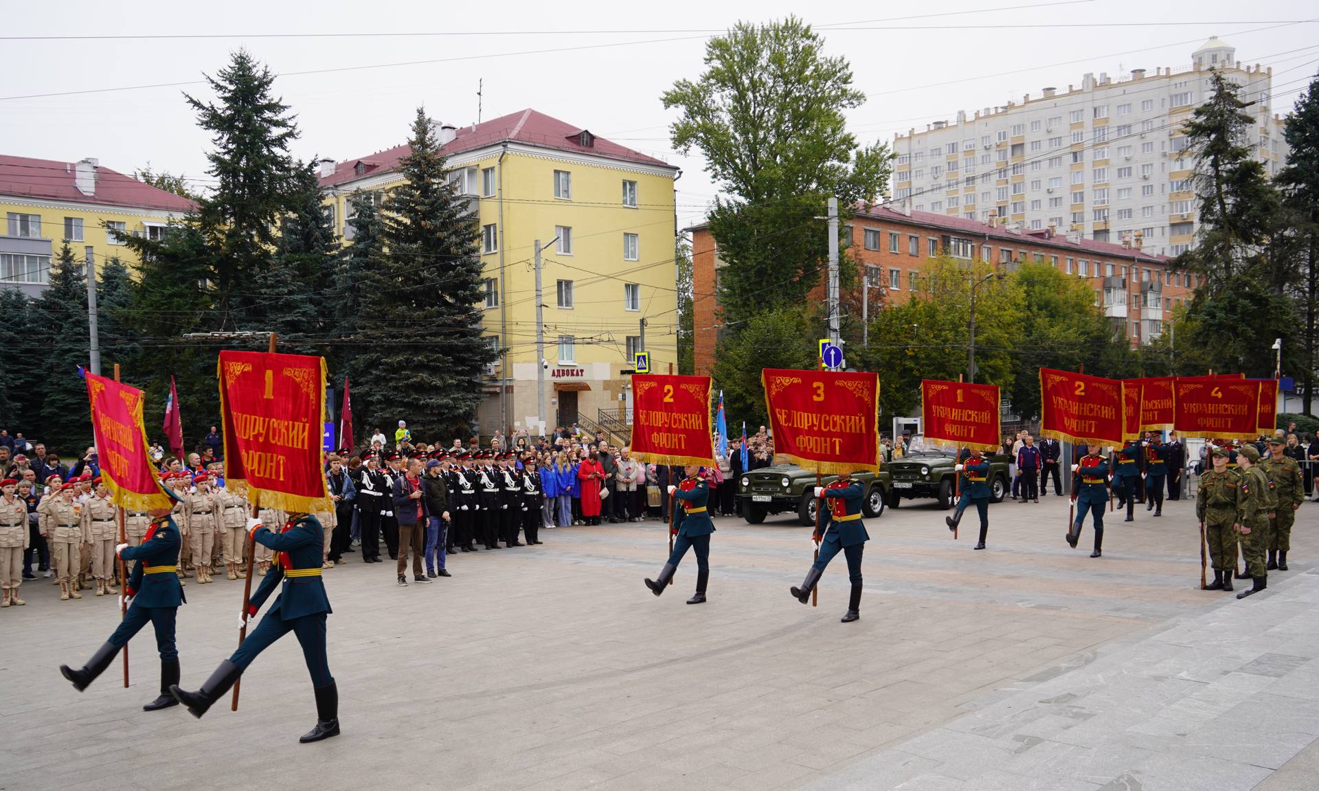 В парадном марше на площади Партизан — штандарты фронтов и соединений, освободивших нашу Родину. Наименования этих фронтов золотыми буквами вписаны в историю нашего региона и России, они символизируют доблесть, честь и отвагу защитников нашей Родины! Штандарты несут продолжатели славных воинских традиций нашей Родины — военнослужащие 154-го отдельного Комендантского Преображенского полка.