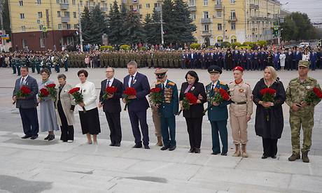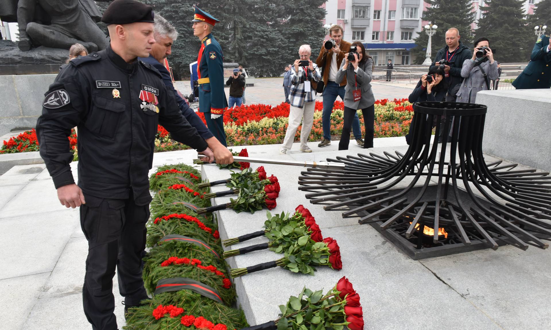 В знак памяти и благодарности воинам и партизанам, победителям в Великой Отечественной войне 1941–1945 годов гирлянду и цветы к Вечному огню памяти народной возложили заместитель полномочного представителя Президента Российской Федерации в Центральном федеральном округе Сергей Нештенко, Губернатор Брянской области Александр Богомаз, Командующий Центральным округом Федеральной службы войск национальной гвардии, генерал полковник Александр Попов, участник Великой Отечественной войны 1941–1945 годов, почетный гражданин Брянска Борис Васильевич Шапошников, Герой Российской Федерации Александр Постоялко, Герой Российской Федерации Андрей Фроленков, мать Героя Российской Федерации Галина Георгиевна Василева, мать Героя Российской Федерации Лидия Филипповна Ермакова, Мать Героя Российской Федерации Елена Федосовна Ермакова, мать погибшего офицера в Сирийско-Арабской Республике Людмила Федоровна Журавлева, председатель Брянской областной Думы Валентин Суббот, главный федеральный инспектор по Брянской области Андрей Дьячук, сенаторы Федерального Собрания Российской Федерации Галина Солодун и Вадим Деньгин, депутаты Государственной Думы Федерального Собрания Российской Федерации Артем Туров, Николай Алексеенко, Николай Щеглов, Николай Валуев, председатель Брянского областного суда Александр Курганов, председатель Арбитражного суда Брянской области Евгений Егоров, прокурор Брянской области Александр Войтович, начальник управления ФСБ России по Брянской области Сергей Воронин, начальник управления МВД России по Брянской области Владислав Толкунов, руководитель следственного управления Следственного комитета Российской Федерации по Брянской области Максим Лукичев, начальник управления Федеральной службы войск национальной гвардии Российской Федерации по Брянской области Иван Ванчугов, начальник главного управления МЧС России по Брянской области Вадим Уваркин, временно исполняющий обязанности начальника пограничного управления ФСБ России по Брянской области Амир Амиров, начальник Центра специальной связи и информации Федеральной службы охраны Российской Федерации в Брянской области Олег Бельский, руководитель управления Федеральной службы судебных приставов по Брянской области — главный судебный пристав Брянской области Елена Бывшева, начальник управления ФСИН России по Брянской области Сергей Герасимов, начальник Брянской таможни Сергей Санакоев, руководитель управления ФНС России по Брянской области Андрей Маркелов, военный комиссар Брянской области Ильфат Абзалов, руководители и заместители руководителя исполнительных комитетов, руководители судебных органов Брянской области, прокуратуры Брянской области, правоохранительных органов и силовых структур Брянской области, заместители Губернатора Брянской области, депутаты Брянской областной Думы, руководители города Брянска, представители Брянской епархии, руководители общественных организаций, почетные гости из Республики Беларусь, Абхазии, Луганской Народной Республики, Республики Дагестан, Орловской, Липецкой и Курской областей, руководители органов исполнительной власти Брянской области, представители политических партий и общественных объединений.
