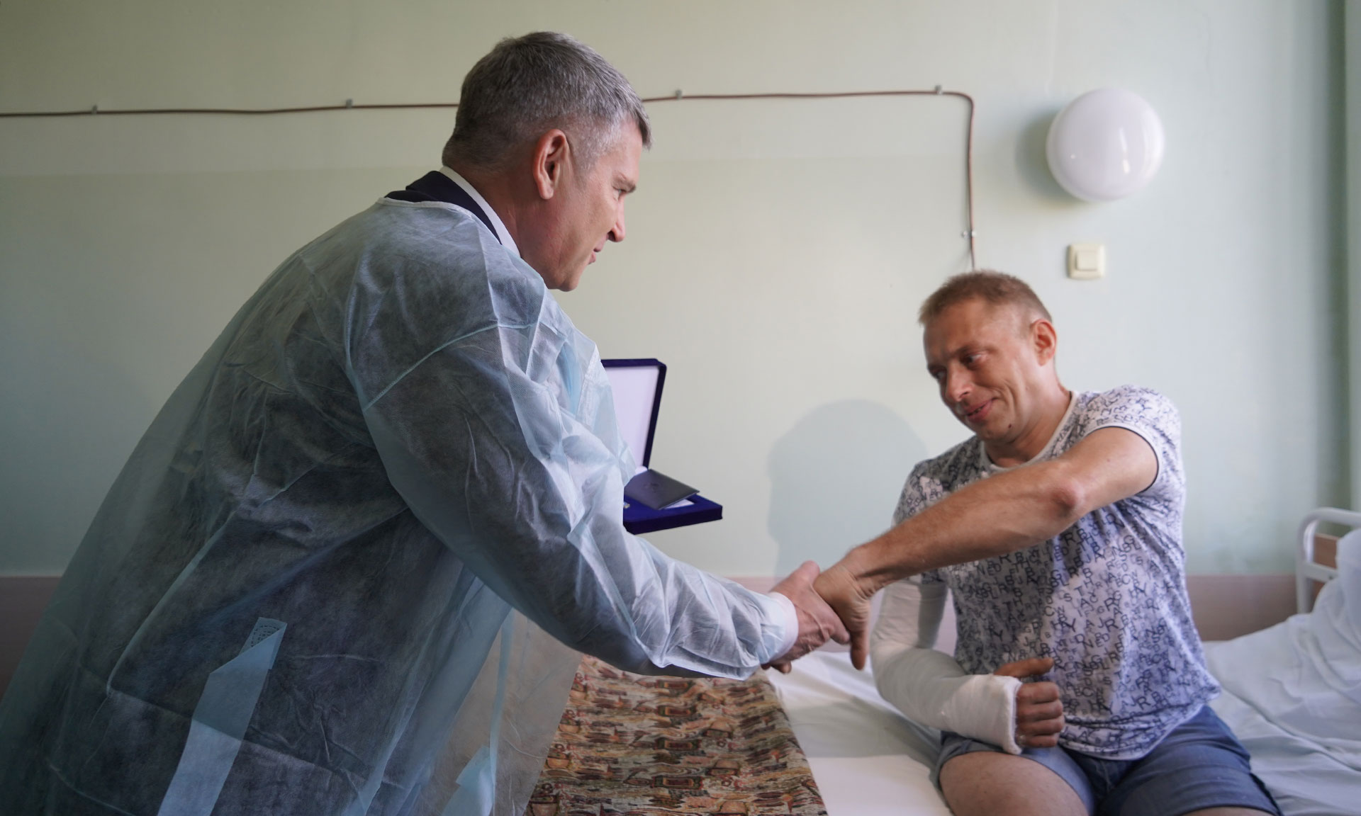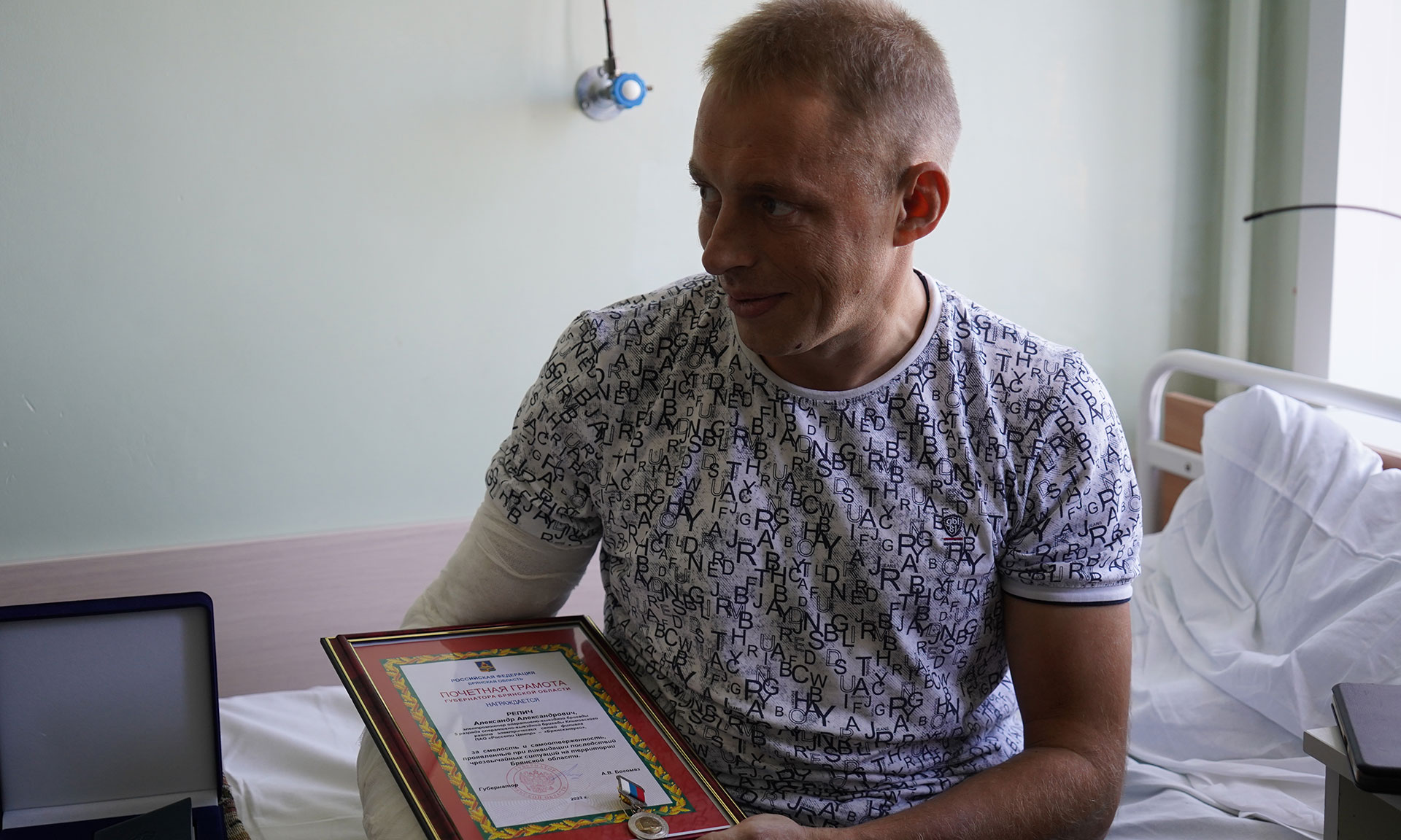 22 сентября Губернатор Брянской области Александр Богомаз и генеральный директор ПАО «Россети Центр» — управляющей организации ПАО «Россети Центр и Приволжье» Игорь Маковский в Брянской областной больнице посетили электромонтера оперативно-выездной бригады Климовского РЭС «Брянскэнерго» Александра Репича, который получил ранение при исполнении трудовых обязанностей и в настоящее время проходит лечение.