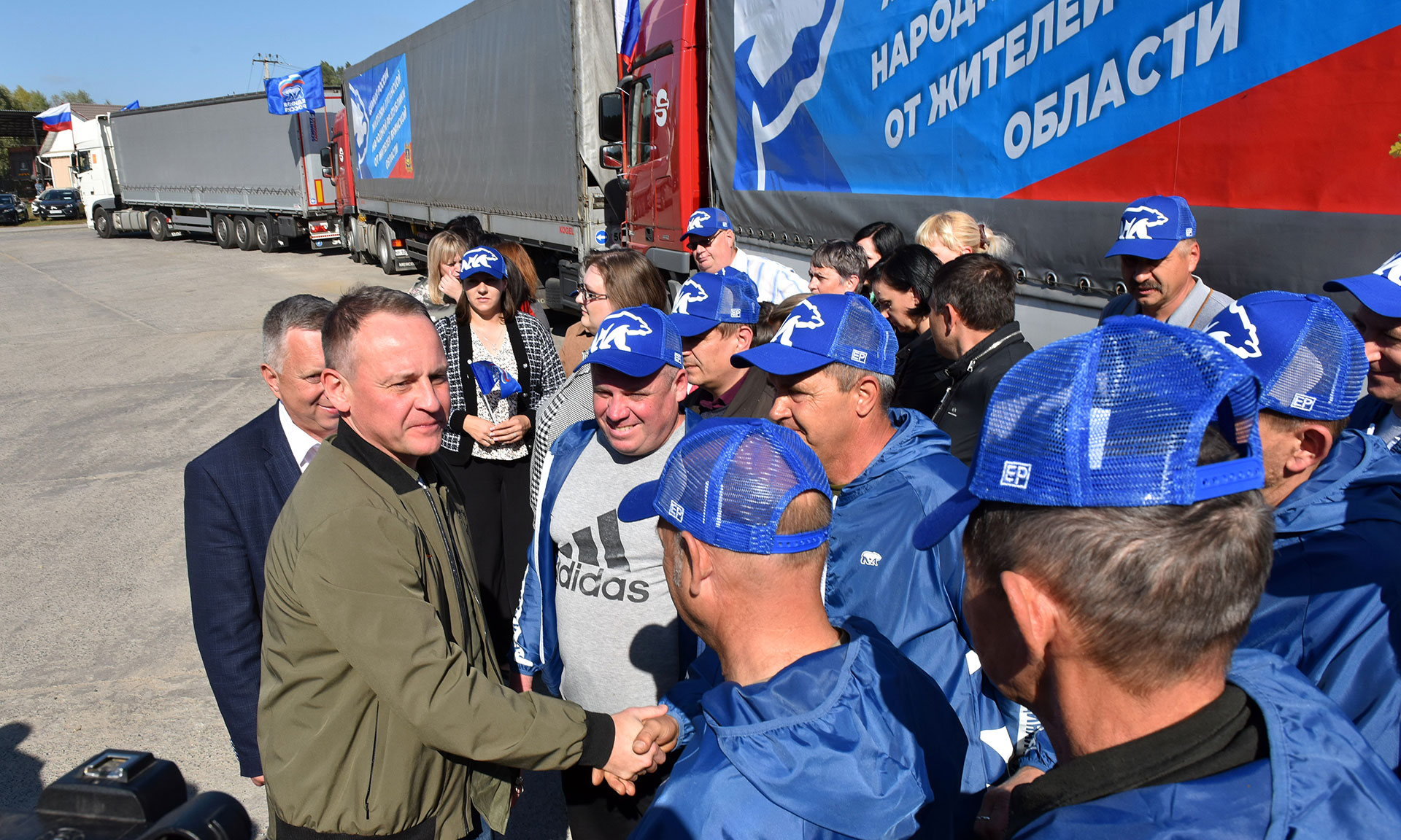 В отправке груза приняли участие глава Центрального исполкома Единой России Александр Сидякин и Губернатор Брянской области Александр Богомаз.