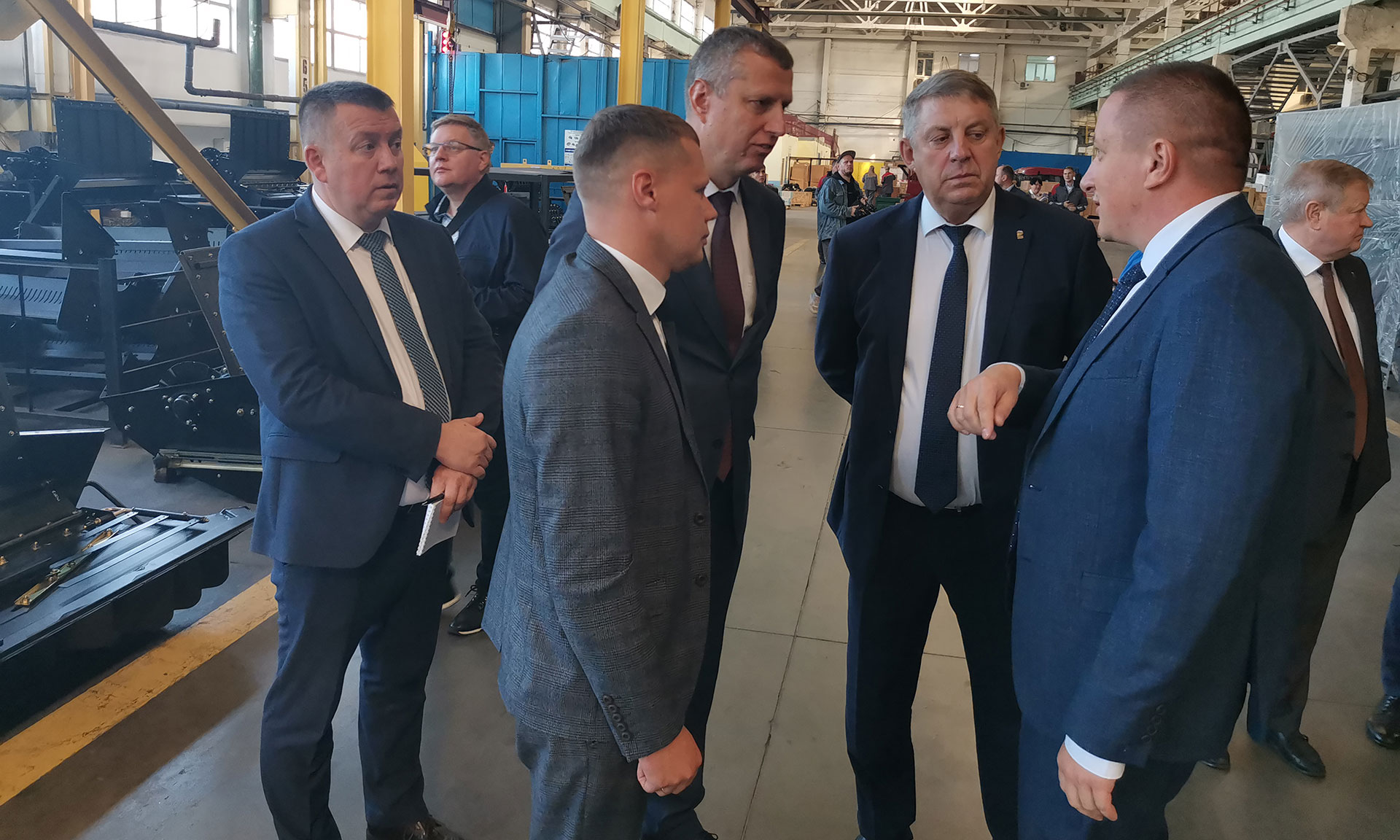 «Брянсксельмаш» — один из успешных проектов интеграции России и Белоруссии. Сегодня это второй комбайновый завод в стране. Здесь реализован инвестиционный проект стоимостью более 320 млн рублей по созданию новых производств по выпуску зерноуборочных комбайнов с учетом технического перевооружения. Это не только модернизация, но и расширение производства, новые рабочие места. Предприятие активно пользуется мерами государственной поддержки. В прошлом году это 216,4 млн рублей федеральных средств.