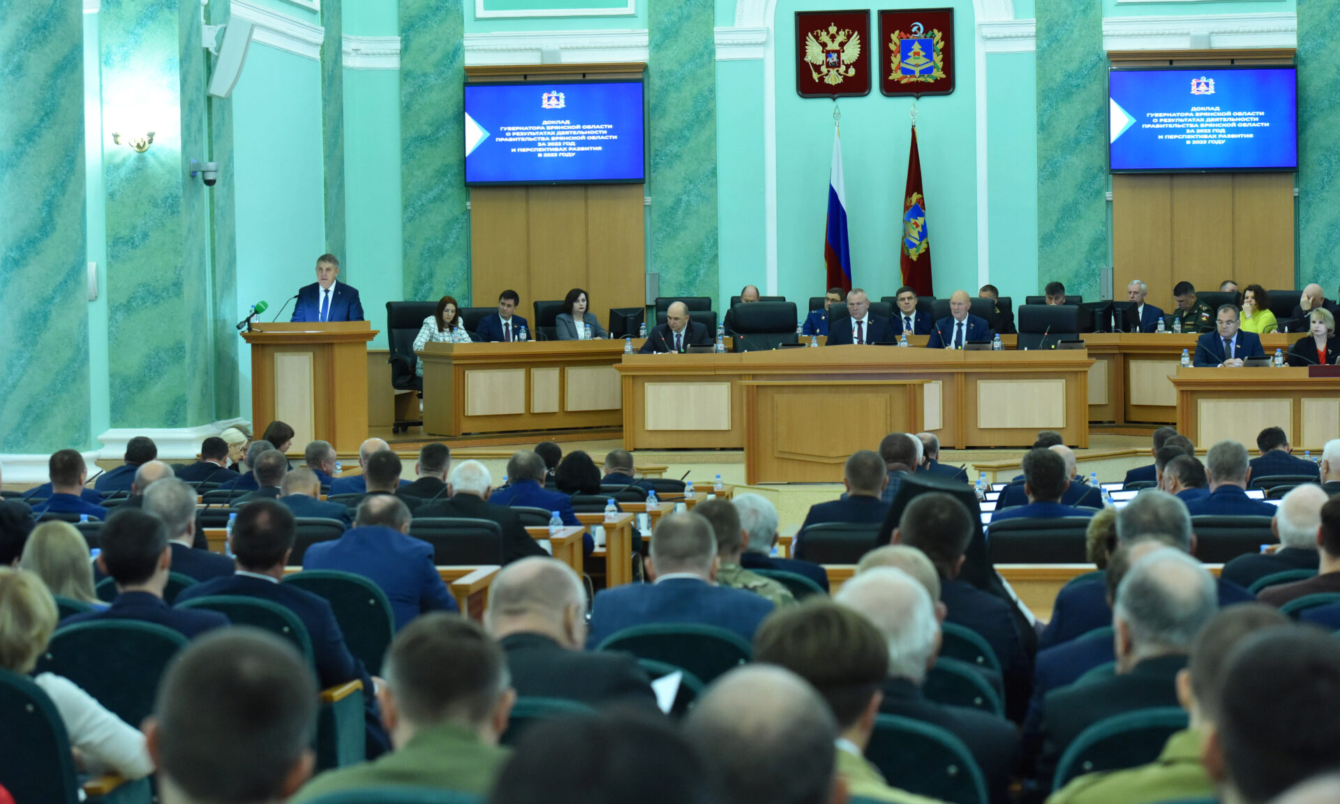 В рамках рассмотрения вопросов повестки был заслушан доклад Губернатора[pdf;250 кб] (презентация доклада [pdf; 31 мб]) о результатах деятельности Правительства Брянской области за прошлый год и перспективах развития. Перед началом доклада присутствующие почтили минутой молчания память погибших в ходе специальной военной операции.