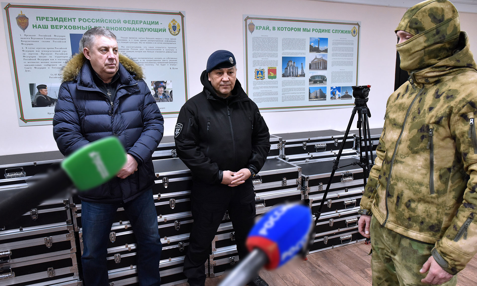 В преддверии Нового года Губернатор Брянской области Александр Богомаз вручил подразделениям Министерства обороны РФ, управления Росгвардии по Брянской области, Пограничного управления ФСБ России по Брянской области, группировке прикрытия «Брянск» оборудование — квадрокоптеры, радиостанции, антидроновые ружья, детекторы БПЛА — и спецсредства, необходимые для выполнения задач специальной военной операции и обеспечения безопасности на государственной границе. В мероприятии принял участие начальник Управления Росгвардии по Брянской области Иван Ванчугов.