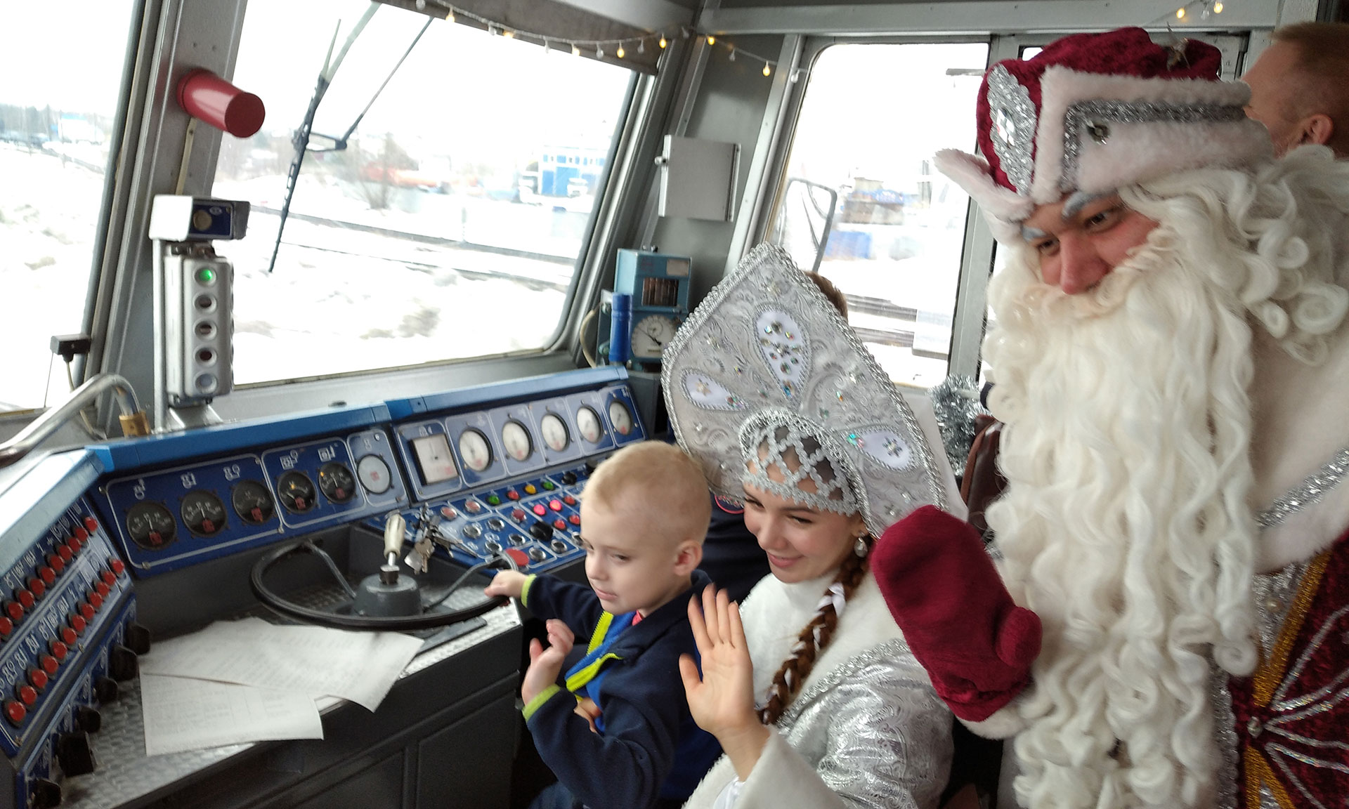 Александр Богомаз снял с новогодней елки три желания. Одно из них, это мечта Артема из Брянска. Мальчик хотел побывать в роли машиниста поезда. И вот 29 декабря Артем целый час ехал в кабине машиниста по заснеженному лесу вместе с Дедом Морозом и Снегурочкой.