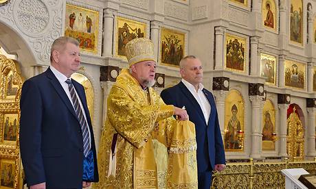 Православных от имени Губернатора Брянской области Александра Богомаза поздравили Валентин Суббот и Николай Симоненко. Также заместитель Губернатора поблагодарил Владыку Владимира за внимание и помощь в укреплении православной веры на Брянщине.