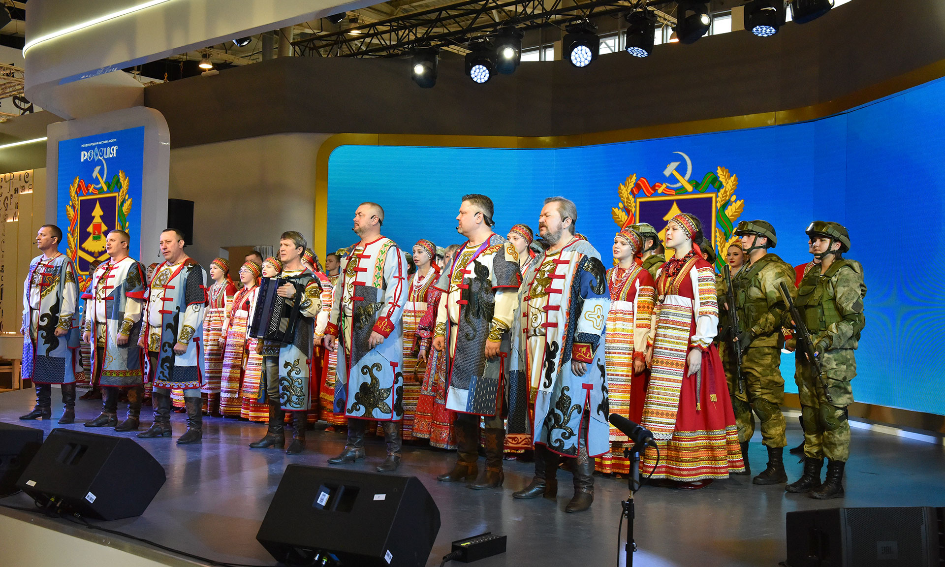 На экспозиции региона гостей встретилнародный артист России Иосиф Камышев в образе командира партизанского отряда. После презентации на экспозиции начала работать тематическая программа, в которую вошли выступления народных коллективов, народные игры и традиционные обряды величания гостей, гостям выставки представлена информация о традиционном народном костюме Брянской области, состоялись мастер-классы различной направленности, в том числе народных мастеров России и Брянской области.