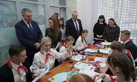 После официального открытия Губернатор Александр Богомаз осмотрел помещения штаба, пообщался с волонтерами.