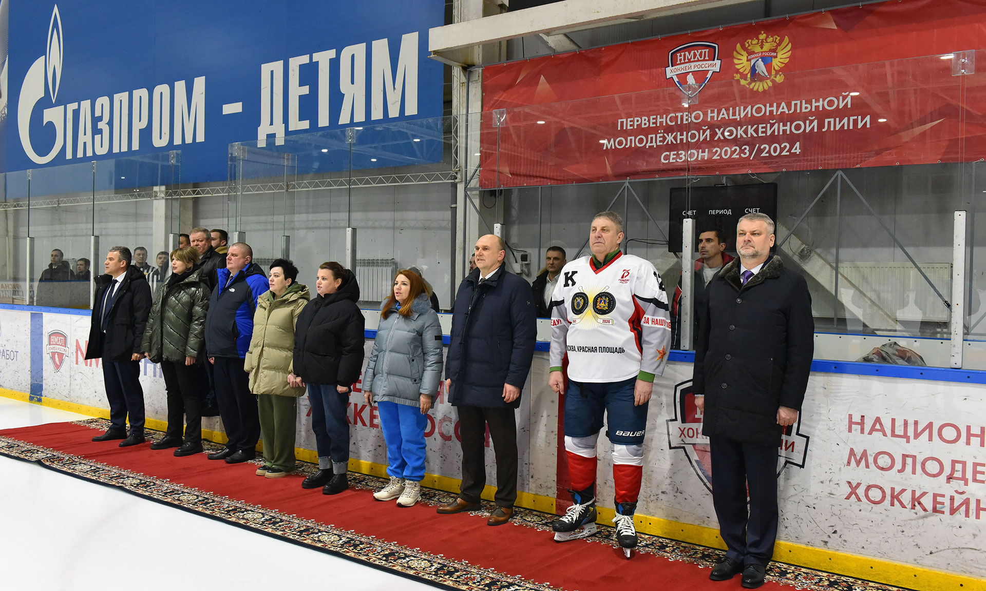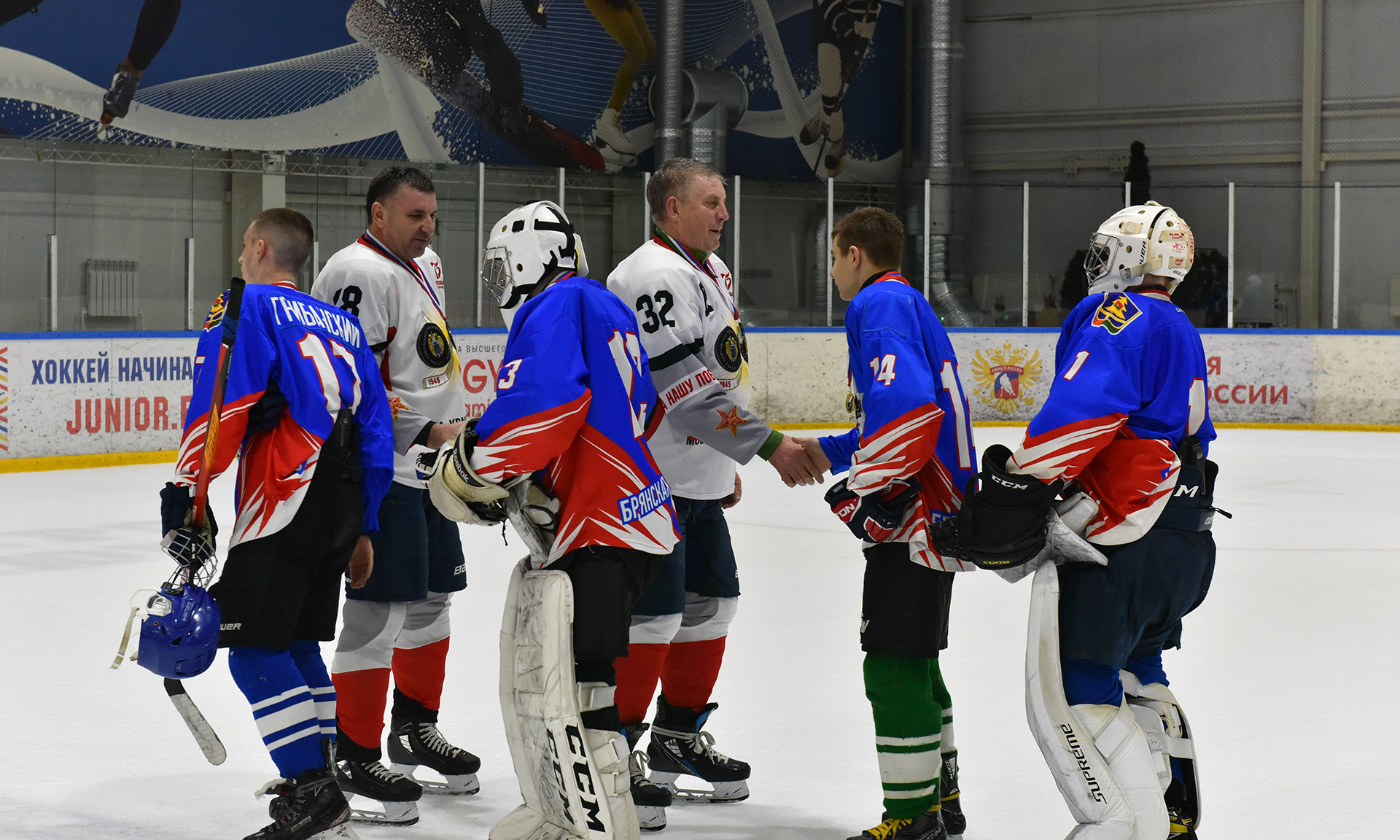 Символичное вбрасывание шайбы — сигнал к началу матча — произвела спортсменка по фигурному катанию спортивной школы «Брянск», дочь участника специальной военной операции Полина Кузнецова. В составе команды Правительства Брянской области в качестве капитана и нападающего выступил Губернатор Брянской области Александр Богомаз.