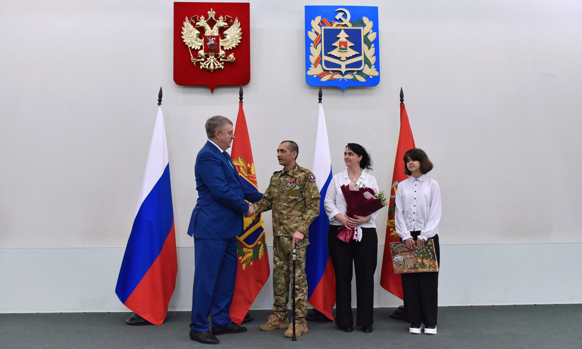 Глава многодетной семьи Руслан Юсенов — участник специальной военной операции, в ходе которой получил тяжелое ранение. Руслан — ветеран боевых действий, награжден Орденом мужества. Губернатор Брянской области Александр Богомаз вручил Руслану Юсенову заслуженную медаль «Участник специальной военной операции».