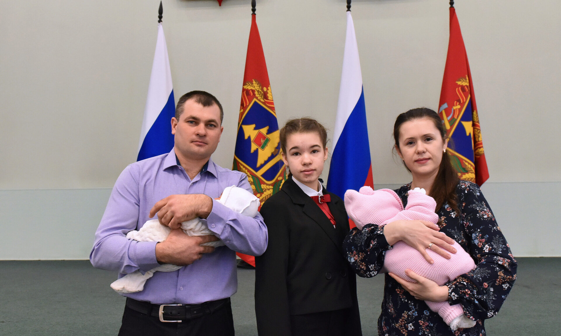 В 2023 году в Брянской области родилось 98 двойняшек. Отрадно, что в большинстве случаев при рождении двойни семья становится многодетной. Сертификат на областной материнский капитал из рук главы региона получила и семья Пушкаревых, Юлия и Роман, которые в конце 2023 года стали счастливыми родителями двойни — Анны и Алены, а у их старшей дочери Полины появились сразу две младшие сестрёнки.