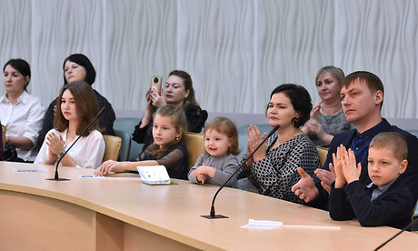 У нас сегодня в зале присутствует семья Гришеньковых, которые воспитали пятерых детей, а что самое важное, их бабушка, Феофания Ефимовна, воспитала восьмерых, и все они выросли достойными людьми, которые сами уже воспитали достойных сыновей.