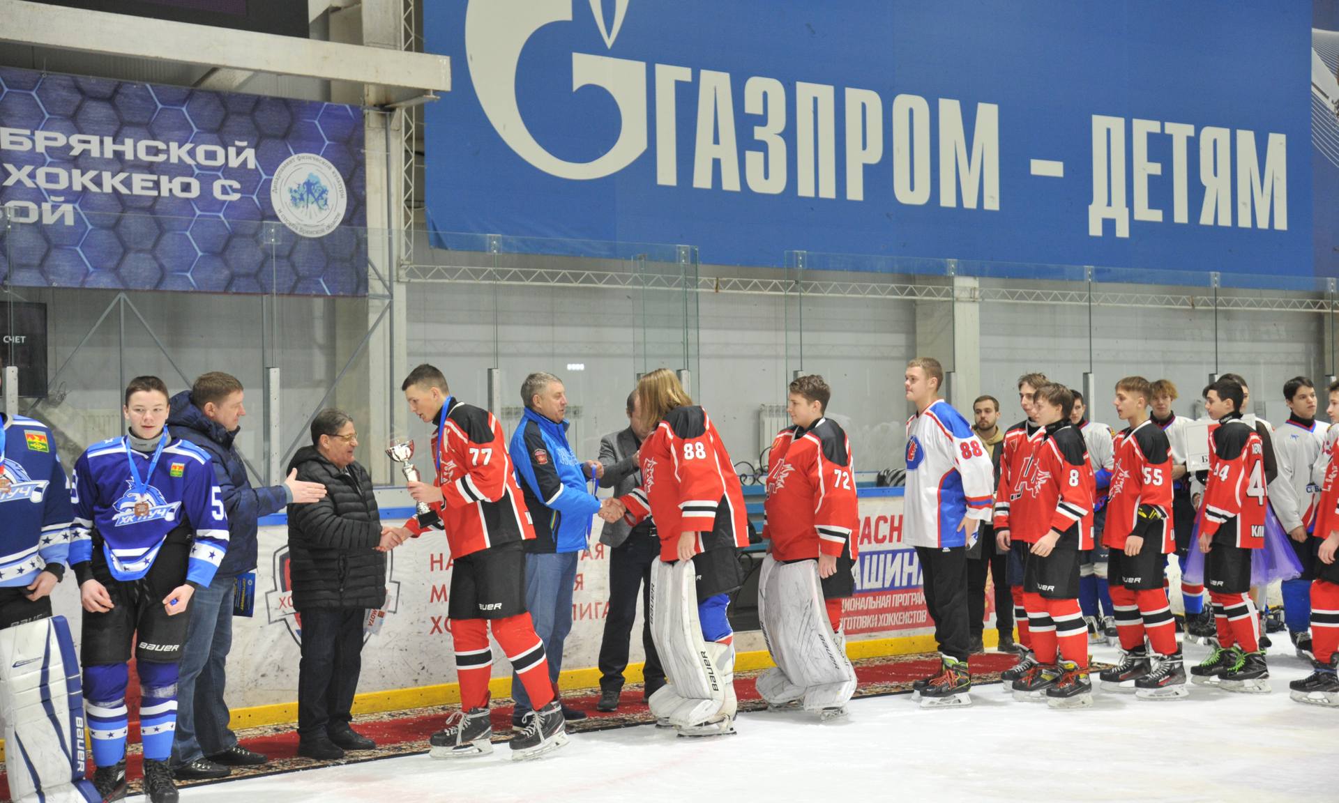 После окончания соревнований состоялось торжественное награждение победителей и призеров Первенства Брянской области по хоккею среди юношей всех возрастов. Юным спортсменам были вручены кубки, грамоты имедали. Итоги чемпионата следующие: