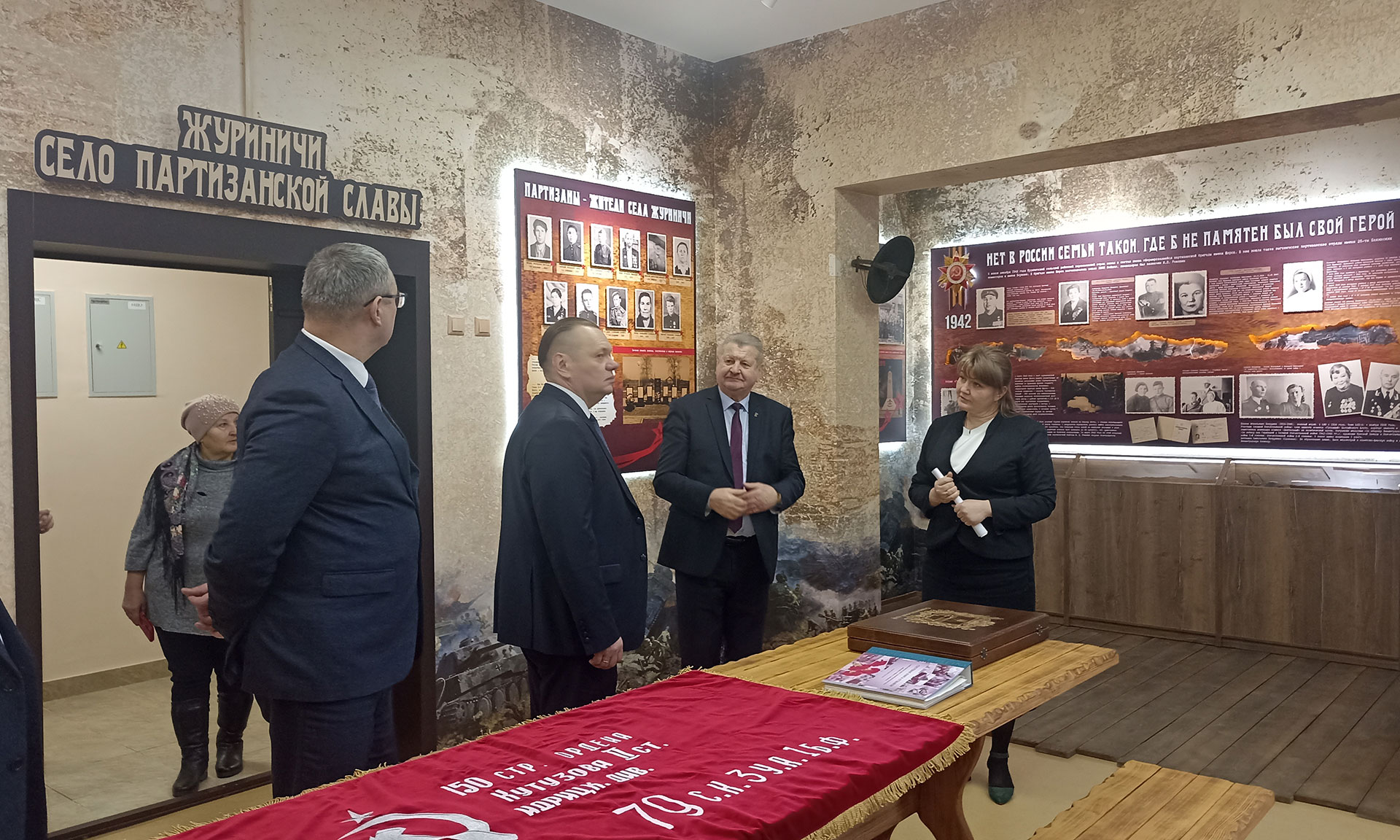 В рамках государственной программы «Комплексное развитие сельских территорий» в Журиничах построили школу-детский сад на 130 мест. Гостям показали современные учебные кабинеты, оборудованные интерактивными досками, проекторами и компьютерным местом учителя, кабинет физики с потолочной системой, а также гордость Журиничского сельского поселения — музей истории села Журиничи — села Партизанской славы.