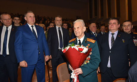С поздравлением выступил ветеран Великой Отечественной войны, полковник, почетный гражданин города Брянска Борис Шапошников: