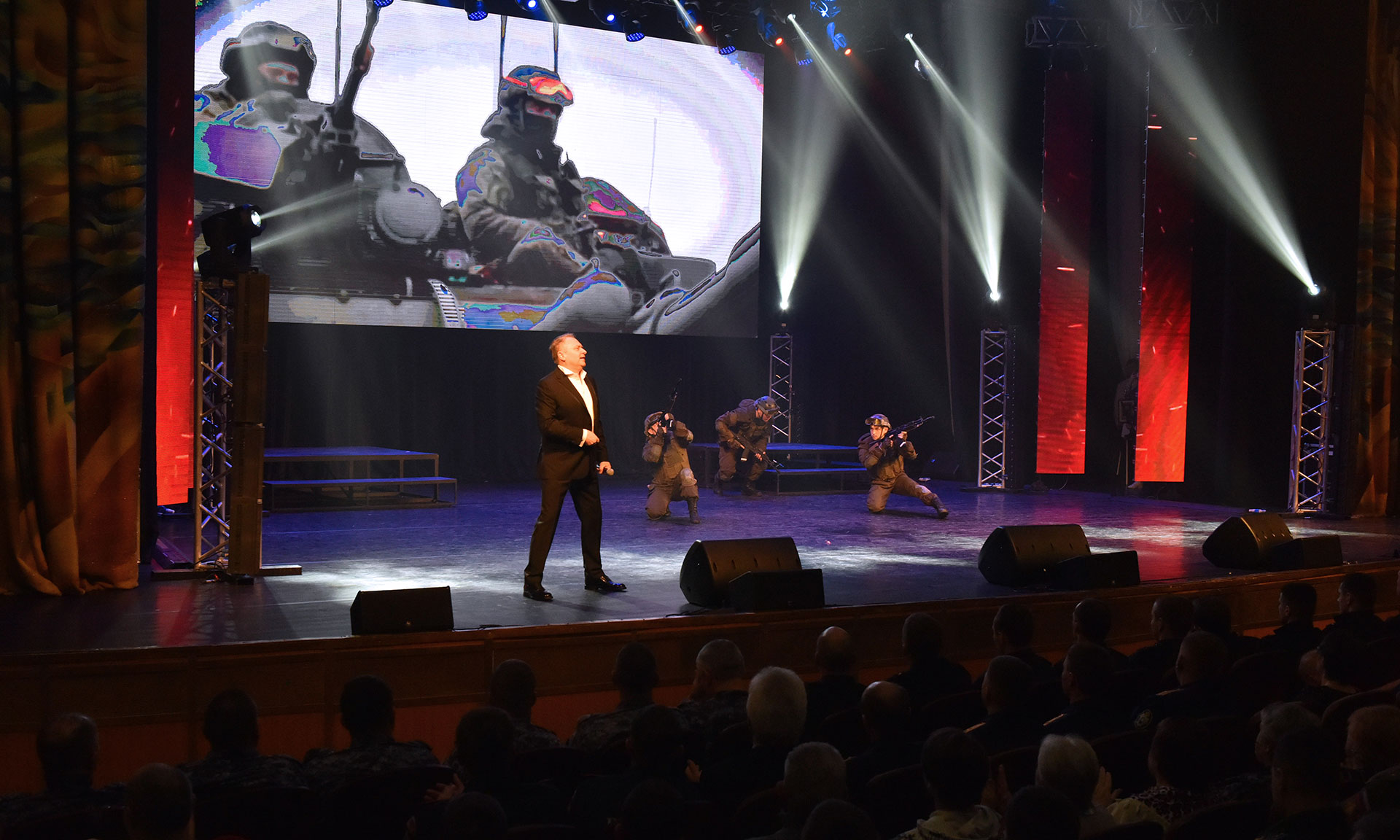 Далее зрителям было представлено театрализованное действо в трех эпизодах. Эпизод первый — «Я молюсь за тебя, — возвращайся живым!».