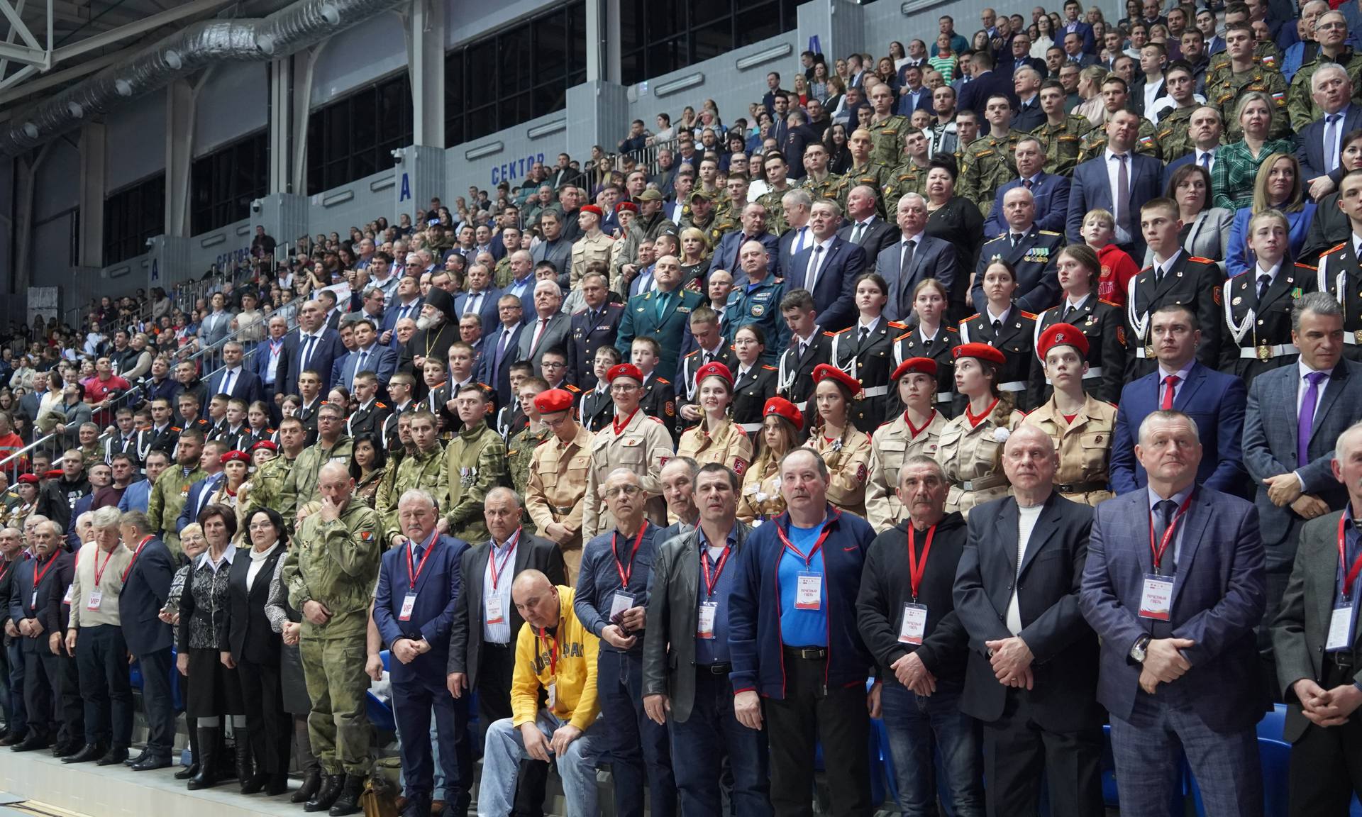 Чемпионат России проходит в этом прекрасном спортивном комплексе, который был построен по поручению Президента нашей страны, нашего национального лидера Владимира Владимировича Путина, и по итогам прошлого года был признан лучшим спортивным объектом России. Он носит имя нашего прославленного земляка, десятикратного чемпиона мира, заслуженного мастера спорта, капитана сборной страны по самбо Артёма Осипенко.