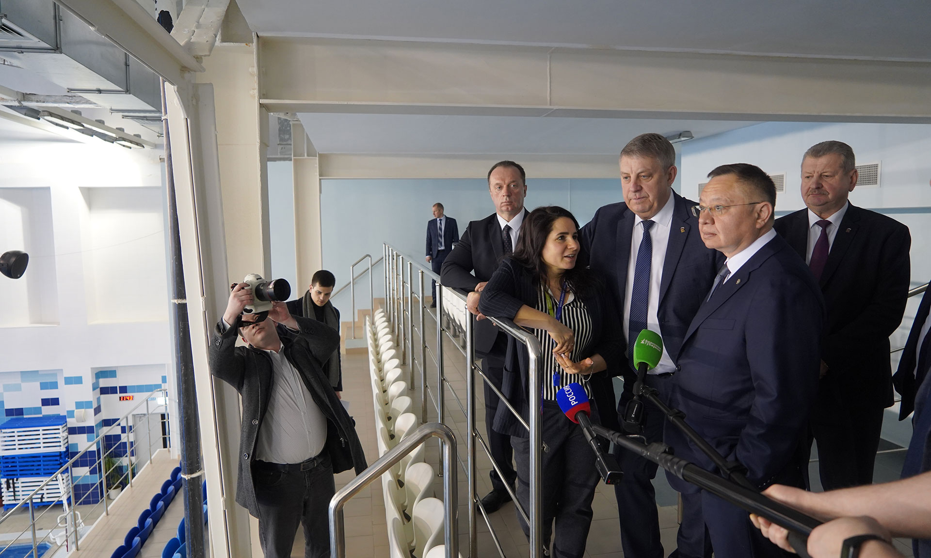 5 марта Министр строительства и жилищно-коммунального хозяйства Российской Федерации Ирек Файзуллин и Губернатор Брянской области Александр Богомаз посетили Дворец единоборств имени Артема Осипенко, где в эти дни впервые в Брянске проходит Чемпионат России по самбо.
