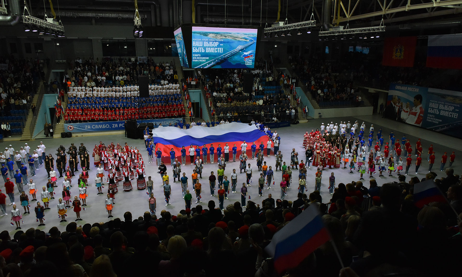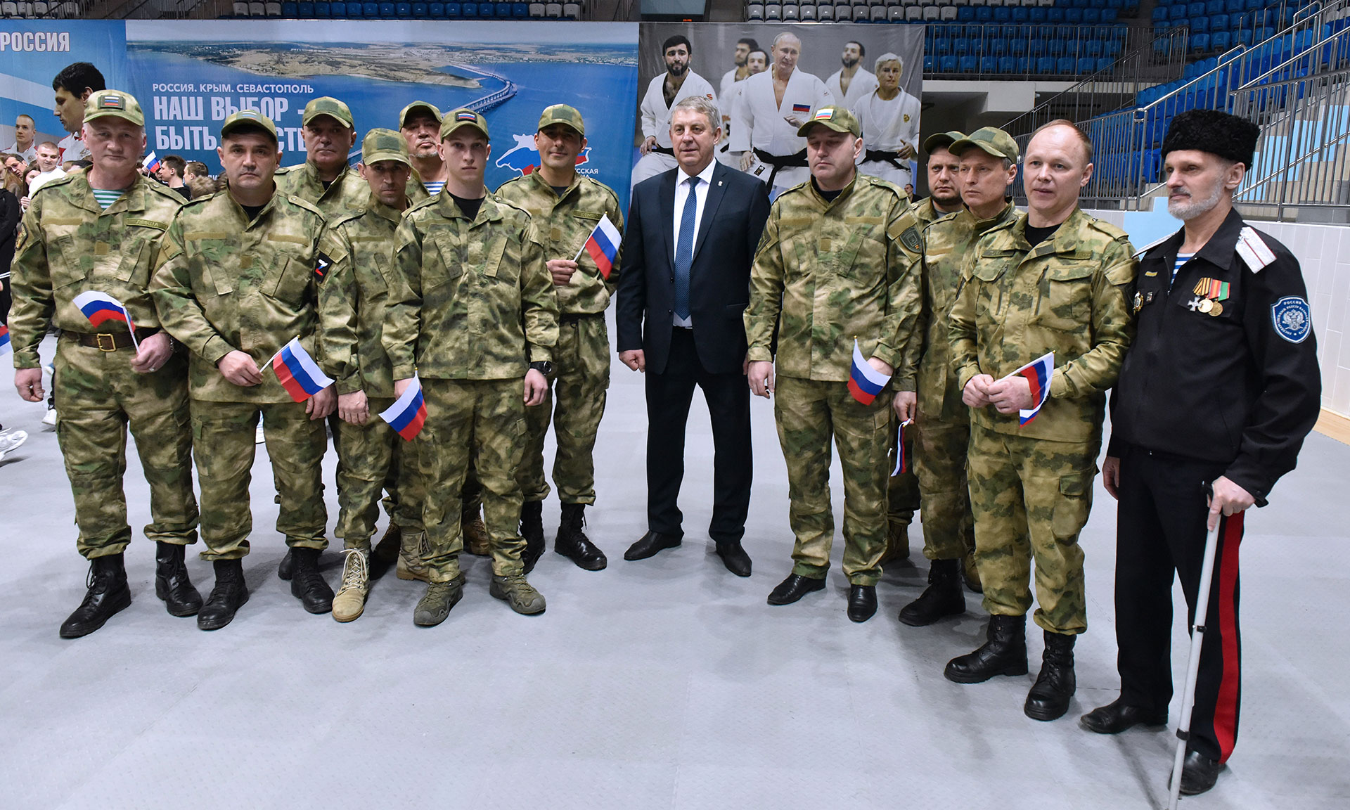 — Дорогие земляки, сегодня мы с вами собрались в этом замечательном Дворце единоборств, чтобы отметить юбилейную дату воссоединения Крыма, Севастополя с Россией. Я от всей души поздравляю вас, а в вашем лице всех жителей Брянской области, с этим замечательным событием. 10 лет назад, когда я был депутатом Государственной Думы, мне посчастливилось принимать участие в этом историческом событии подписания договора о вхождении Крыма и Севастополя в состав России. Тогда рядом с нами была делегация Севастополя, Крыма и Керчи. Они стояли и плакали, и у нас тоже текли слезы — слёзы радости, все были счастливы, что они вернулись в Россию. Важно, что мы стали собирать камни, собирать свои земли, земли, которые по праву принадлежали и принадлежат нам. Скоро уже будет два года, как Республики Донбасса вошли в состав нашей страны. Сегодня здесь присутствуют военнослужащие, наши герои, которые принимали участие в СВО, сегодня наши солдаты отстаивают нашу независимость, нашу идентичность, наши исторические ценности.