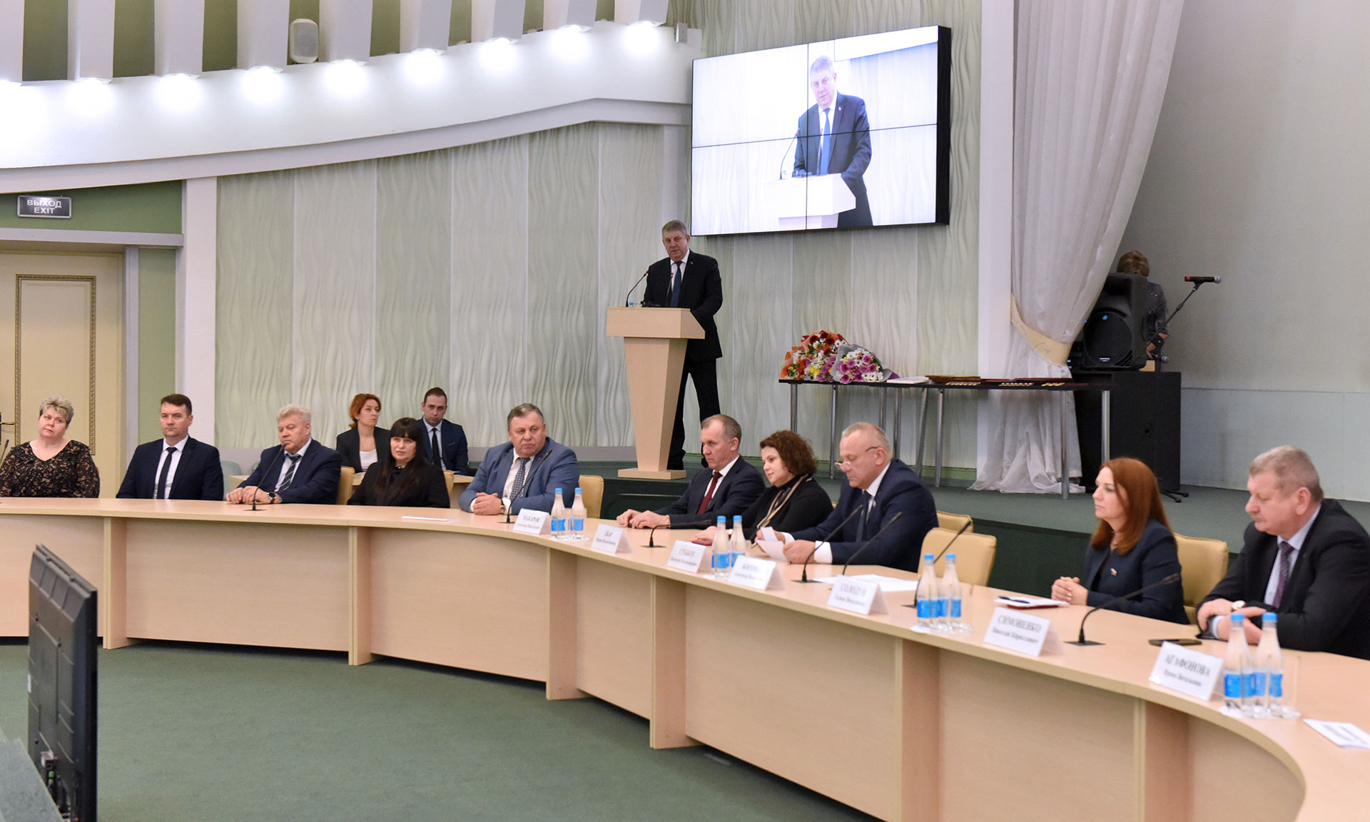 К участникам торжественного собрания обратился Губернатор Александр Богомаз: