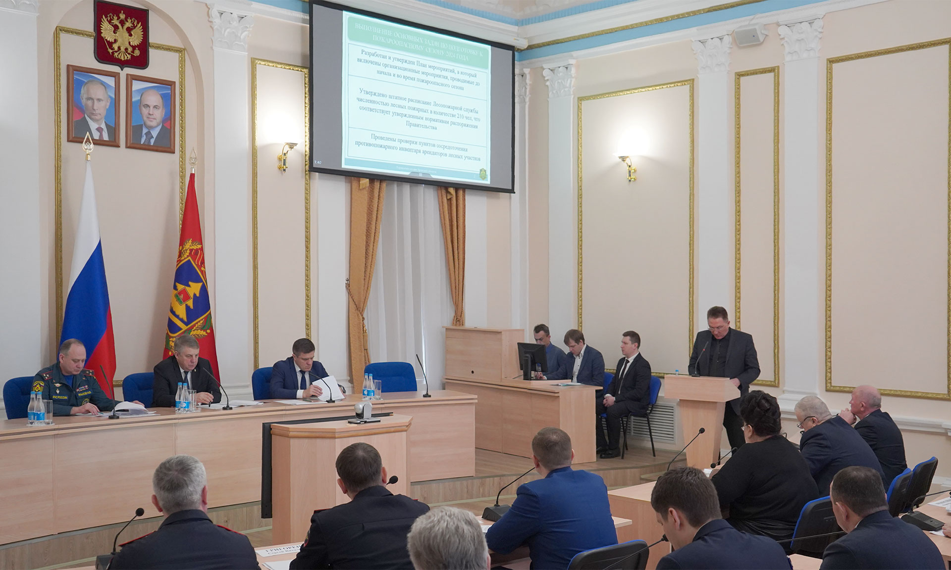 Участники заседания обсудили готовность территориальной подсистемы РСЧС Брянской области к пожароопасному сезону.