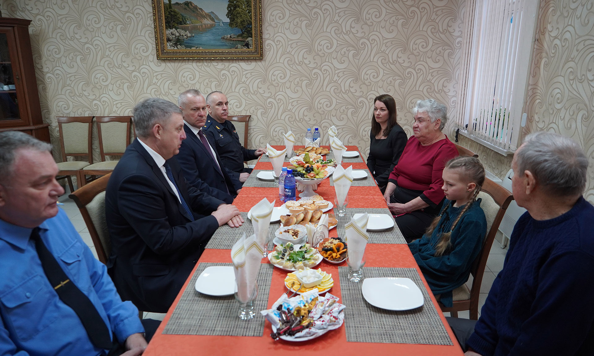В церемонии награждения и встрече с родными боевого офицера приняли участие Губернатор Александр Богомаз, председатель Брянской областной Думы Валентин Суббот, начальник пограничного управления ФСБ России по Брянской области Амир Амиров.
