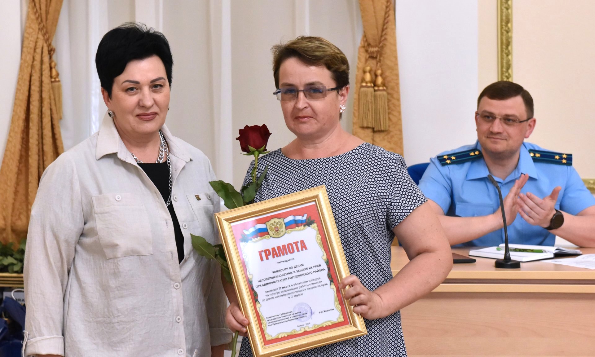В работе круглого стола и награждении приняли участие уполномоченный по правам ребенка в Брянской области Инна Мухина, заместитель руководителя УФССП России по Брянской области Валентина Якушина, заместитель прокурора Брянской области Сергей Голованчиков, старший помощник прокурора Брянской области Юлия Безродная и члены комиссии по делам несовершеннолетних и защите их прав при Правительстве Брянской области.