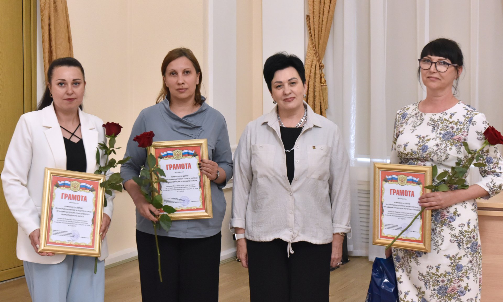 Заместитель Губернатора поздравила участников и 12 победителей конкурса на лучшую организацию работы комиссий по делам несовершеннолетних и защиты их прав по итогам 2019–2024 годов, пожелав дальнейших успехов в работе.