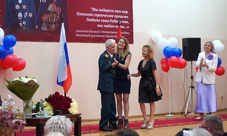 На своём примере Вы воспитали не одно поколение молодёжи. И сегодня уже Ваши славные наследники освобождают Макеевку, освободили Краматорск, которые Вы когда-то освобождали от фашизма. Они сегодня освобождают от неонацизма. Это Вы вложили им любовь к своей Родине, к своей стране, за что Вам, конечно же, слова огромной благодарности. Родина высоко оценила Ваш подвиг, Вы награждены тремя орденами: Красной Звезды, Красного Знамени, Отечественной войны, различными боевыми медалями. Мы Вас ценим, любим и очень уважаем.