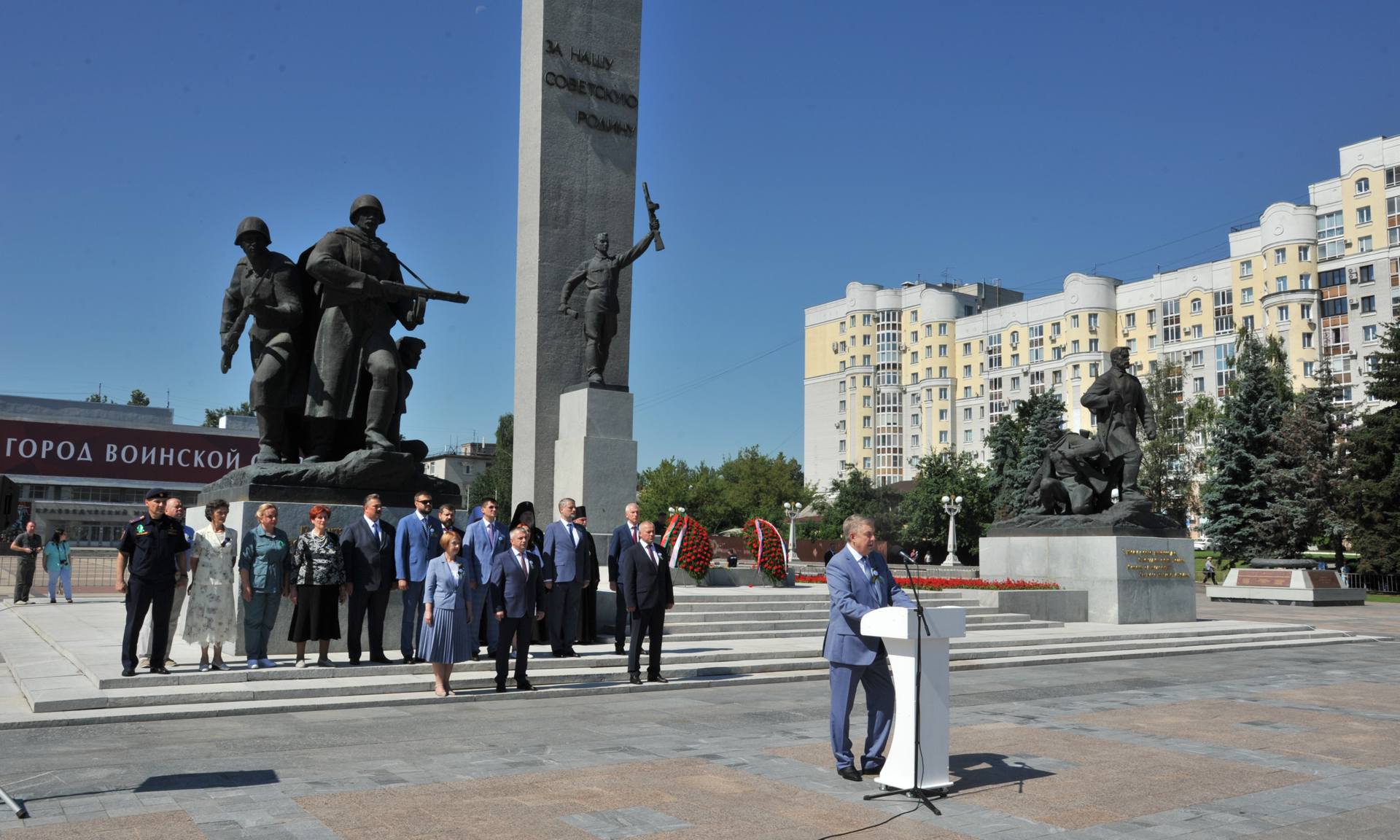 В церемонии возложения также приняли участие советник председателя Правительства Российской Федерации Олег Матыцин, заместитель начальника Управления по связям с соотечественниками и историко-мемориальной работе Федерального агентства по делам СНГ, соотечественников, проживающих за рубежом и по международному гуманитарному сотрудничеству Алексей Петров, главный федеральный инспектор по Брянской области Андрей Дьячук, Его Высокопреосвященство митрополит Брянский и Севский Александр, Его Высокопреосвященство архиепископ Гомельский и Жлобинский Стефан, Его Преосвященство епископ Клинцовский и Трубчевский Владимир, сенаторы Российской Федерации Галина Солодун и Вадим Деньгин, заместитель председателя комитета Государственной Думы по делам СНГ, евразийской интеграции и связям с соотечественниками, член Генерального совета Партии «Едина Россия» Артём Туров, Герой Российской Федерации Андрей Фроленков, матери погибших защитников Отечества Лидия Филипповна Ермакова, Галина Георгиевна Василёва, Марина Николаевна Седнева, руководители судебных, правоохранительных органов и силовых структур Брянской области, руководители территориальных органов федеральных органов исполнительной власти в Брянской области, заместители Губернатора Брянской области и депутаты Брянской областной Думы, руководители города Брянска, делегации республики Беларусь, Луганской и Донецкой народных республик, регионов России, почётные граждане Брянской области, области участники молодёжного Международного лагеря «Дружба-2024», молодёжного патриотического проекта «Дорогами памяти и славы», делегации районов Брянской области.
