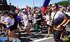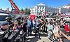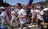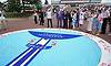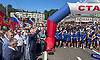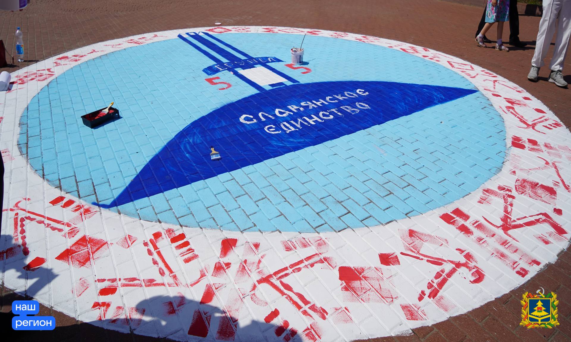 В честь юбилейного фестиваля молодые художники России и Беларуси изобразили на брусчатке Славянской площади его символ — Монумент Дружбы, у которого все начиналось.