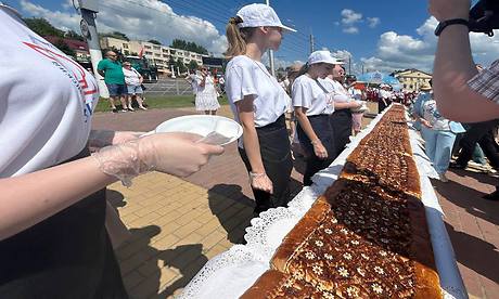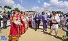 Хозяева праздника — семьи из Гомельской и Брянской областей — на Славянской площади под величальные песни лучших творческих коллективов встречали гостей многометровыми уникальными рушниками, вышитыми мастерицами Гомельской, Могилевской и Брянской земли, и двадцатиметровым славянским пирогом дружбы.