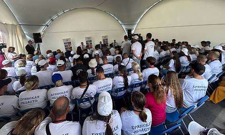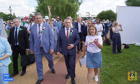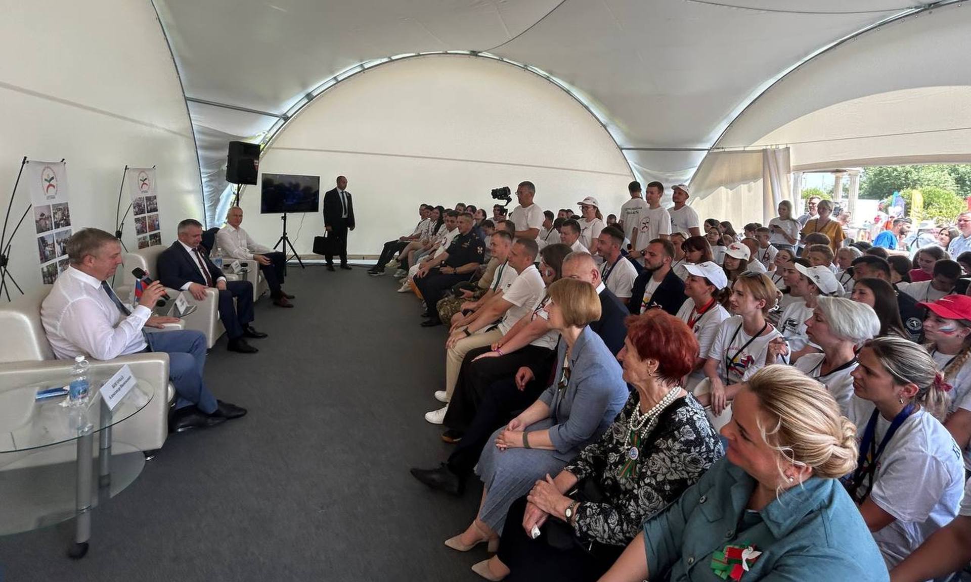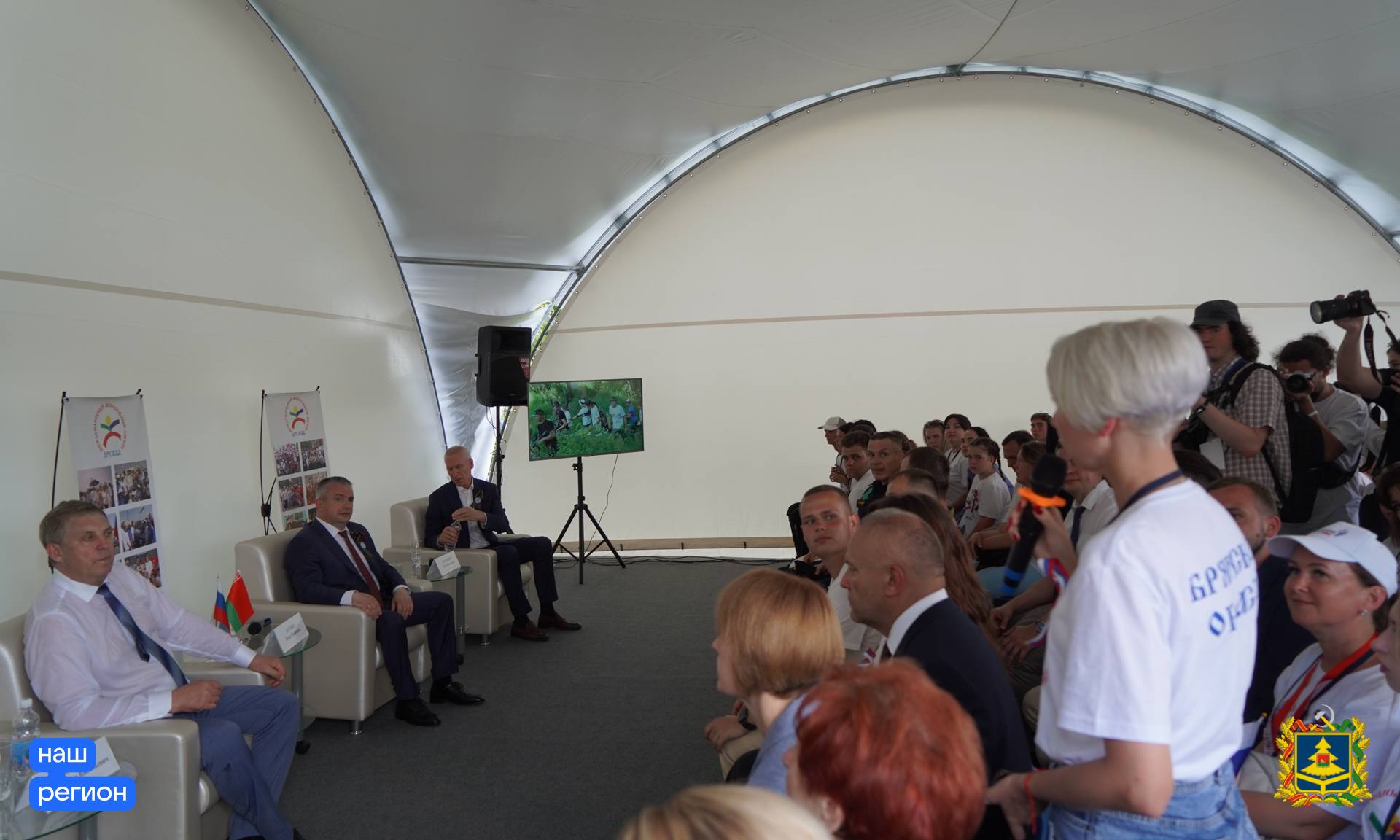 Вместе с председателем Гомельского облисполкома Иваном Крупко и советником Председателя Правительства РФ по спорту Олегом Матыциным Губернатор Александр Богомаз на диалоговой площадке «Живи в веках, славянская семья!» пообщался с участниками лагеря славянской молодежи «Дружба».