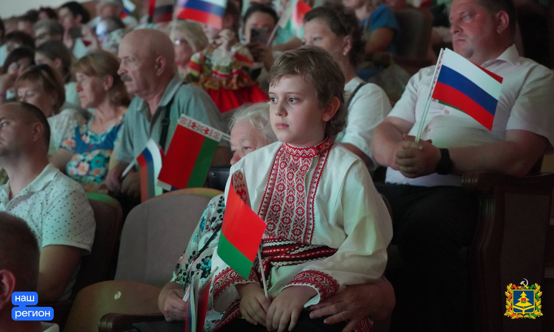 Мы гордимся родством и дружбой с великим белорусским народом. Вместе строим Союзное государство, укрепляем межрегиональное сотрудничество в сфере экономи-ки, молодежной и социальной политики, культуры и спорта, сохраняем историческую память и правду о великих свершениях наших предков.
