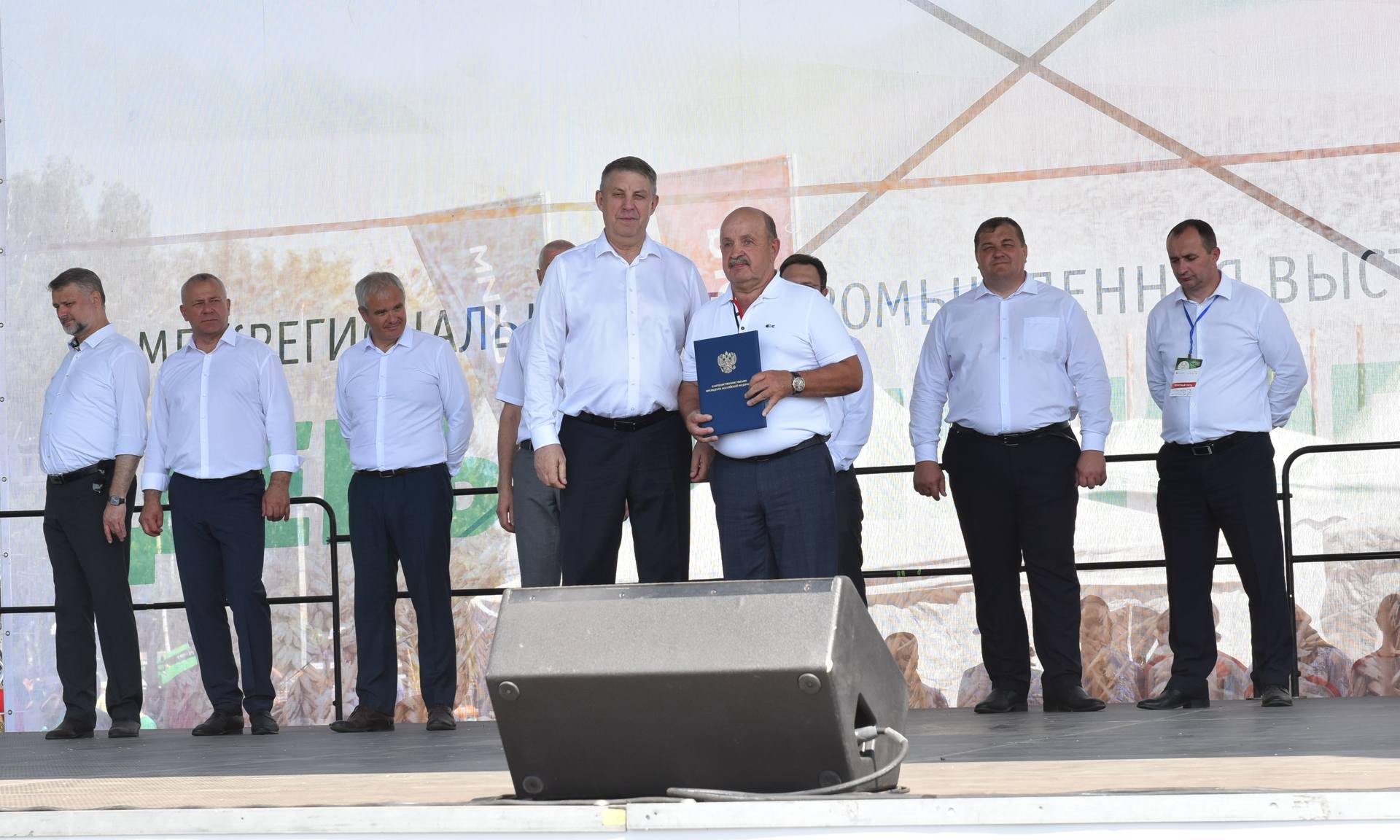 В рамках церемонии открытия «Дня Брянского поля» состоялось награждение лучших работников сельскохозяйственной отрасли. Указом Президента Российской Федерации «За достигнутые трудовые успехи и многолетнюю добросовестную работу» орденом Дружбы наградили заместителя Губернатора Бориса Грибанова.