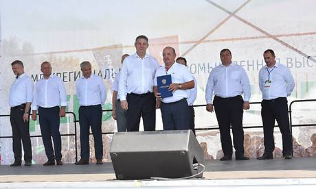 — Уважаемые братья белорусы, представители наших регионов, я хотел бы выразить признательность, прежде всего вам, Александр Васильевич, Правительству Брянской области, всем производителям за эту традицию проведения Дня Брянского поля. Это удивительное по атмосфере и энергетике мероприятие. Когда мы сегодня знакомились с выставкой, видели продукцию предприятий — возникает чувство гордости за нашу великую страну, за великую Брянскую область, которая всегда была оплотом и обороноспособности и продовольственной безопасности. Хочу еще раз поздравить ваш регион с 80-летием, пожелать, чтобы вы так же уверено шли дорогой побед, дорогой, которая показывает молодому поколению наши традиции.