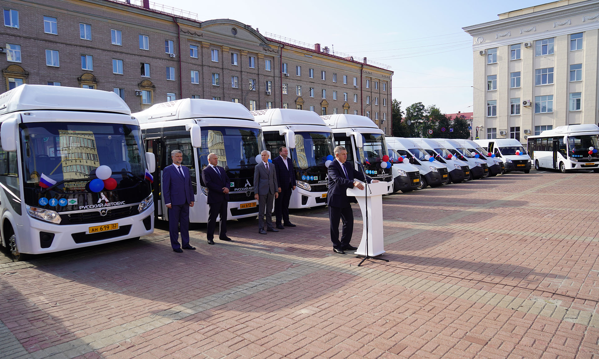 Ключи от 10 автобусов ПАЗ вручены Брянской автоколонне № 1403, 17 автобусов ГАЗ переданы муниципальным образованиям, в числе которых Стародубский муниципальный округ, Почепский, Суражский, Клинцовский, Карачевский, Мглинский, Дубровский, Рогнединский, Брасовскоий, Гордеевский, Клетнянский, Погарский, Комаричский и Красногорский районы.