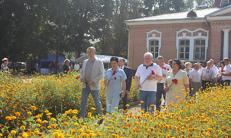 Праздник начался с традиционной литии в церкви Успения Пресвятой Богородицы с. Красный Рог. Затем гости праздника возложили цветы к усыпальнице Алексея Константиновича и Софьи Андреевны Толстых.