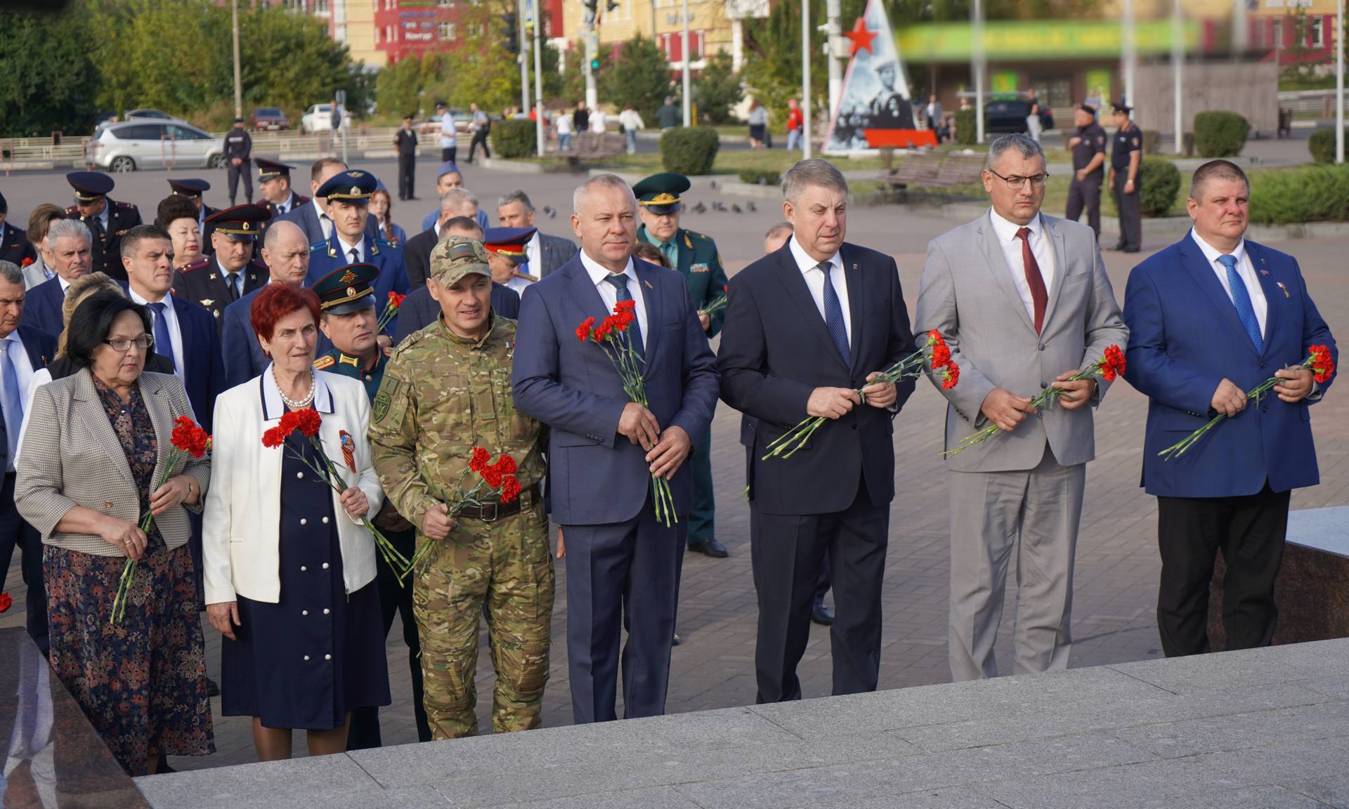 Начались праздничные мероприятия с возложения цветов и венков к стеле Воинской славы на Кургане Бессмертия. В официальной церемонии возложения приняли участие Губернатор Брянской области Александр Богомаз, Герой Российской Федерации Александр Постоялко, Герой Российской Федерации Андрей Фроленков, председатель Брянской областной Думы Валентин Суббот, федеральный инспектор по Брянской области Игорь Фильченков, заместитель председателя Гомельского областного исполнительного комитета Республики Беларусь Андрей Барановский, Герой Труда Брянской области Михаил Кабанов, заведующий отделом Брянской епархии по взаимодействию с обществом и учреждениями культуры иеромонах Корнилий (Недбаевский), председатель Брянского областного суда Александр Курганов, начальник управления ФСБ России по Брянской области Сергей Воронин, начальник управления МВД России по Брянской области Алексей Солдатов, руководитель управления Федеральной службы судебных приставов по Брянской области — главный судебный пристав Брянской области Елена Бывшева, руководитель управления ФНС России по Брянской области Андрей Маркелов, член Общественной палаты Российской федерации, член Брянского регионального отделения Общероссийской общественной организации семей погибших защитников Отечества Лидия Ермакова, председатель постоянного комитета Брянской областной Думы по образованию, науке, культуре и СМИ Людмила Журавлева, заместители Губернатора Брянской области, врио заместителя Губернатора Брянской области и другие руководители силовых структур Брянской области, руководители города Брянска, руководители федеральных территориальных органов.
