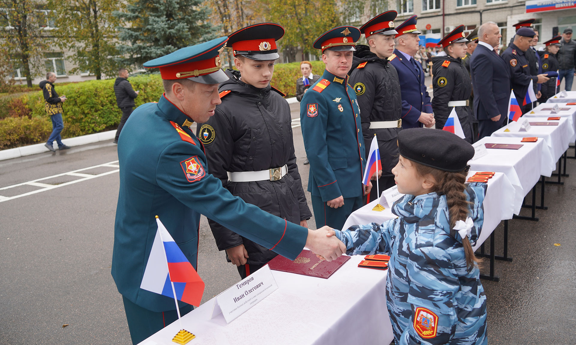 Товарищи кадеты, впереди у вас — непростая дорога знаний и умений, которую необходимо пройти достойно. Статус вашего учебного заведения ко многому обязывает. Ведь имя Героя России Валерия Ивановича Шкурного, погибшего при исполнении служебного долга навсегда вписано в историю нашего Отечества.