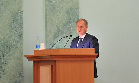 Затем Валентин Суббот вручил парламентариям восьмого созыва удостоверения депутатов Брянской областной Думы и нагрудные знаки.