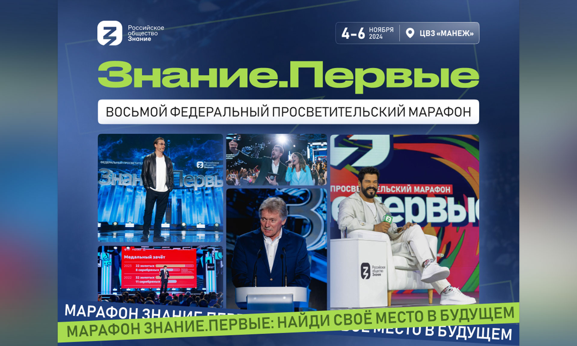 4–6 ноября в День народного единства московский «Манеж» примет в своих стенах участников восьмого просветительского марафона Знание. Первые. Мероприятие организовано Российским обществом «Знание» при поддержке Правительства Москвы.