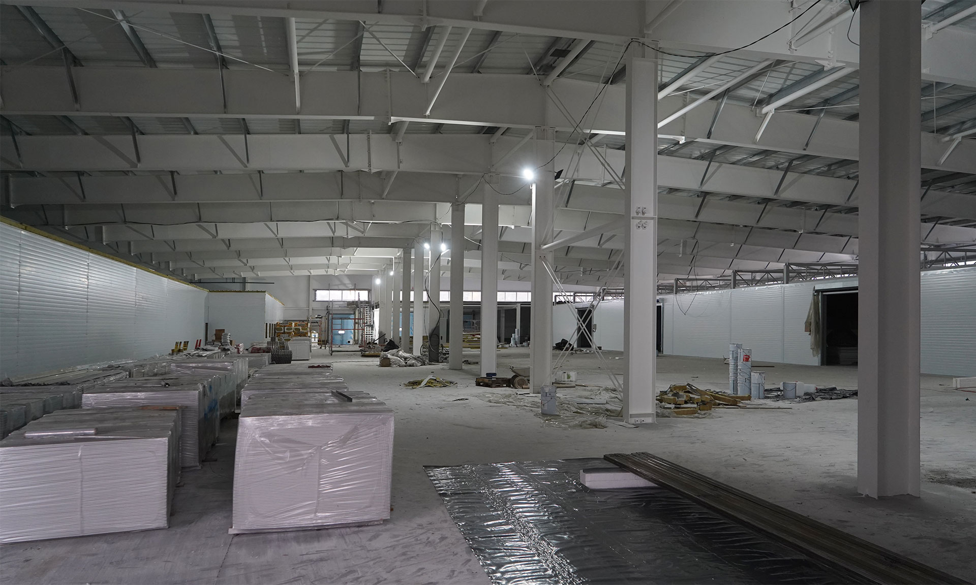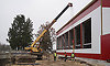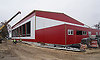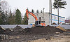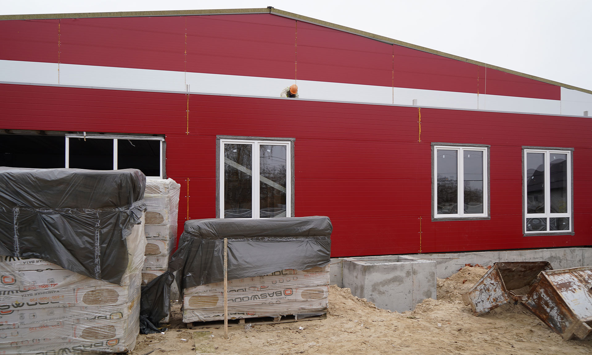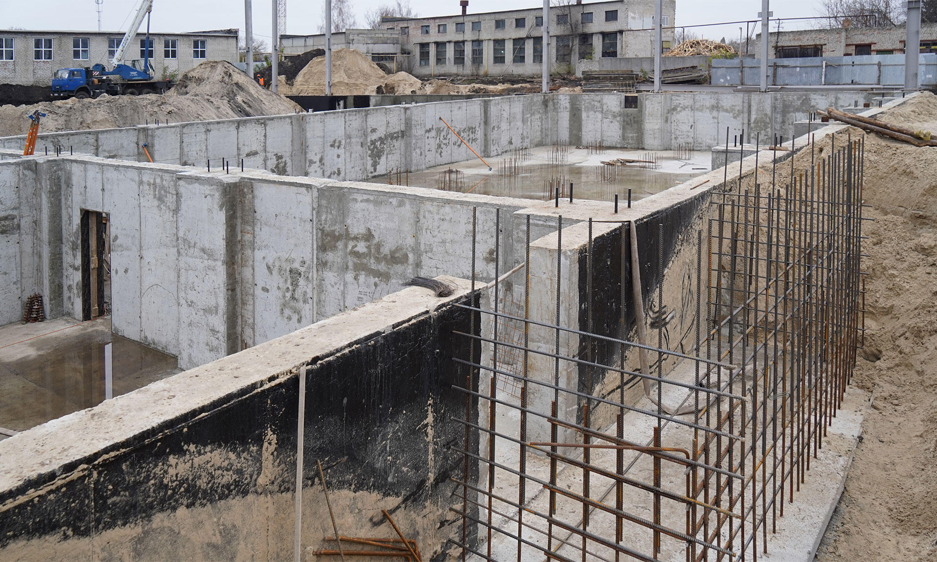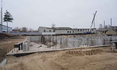Завершены земляные работы по устройству котлована под фундамент, армированию стен подвала и колонн под монтаж несущих конструкций стен объекта, монтируются металлоконструкции производства Почепского завода.