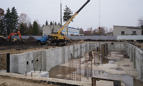 Готова чаша бассейна, строители приступают к бетонированию пола в спортзале, каменщики заканчивают со стенами и можно будет штукатурить.