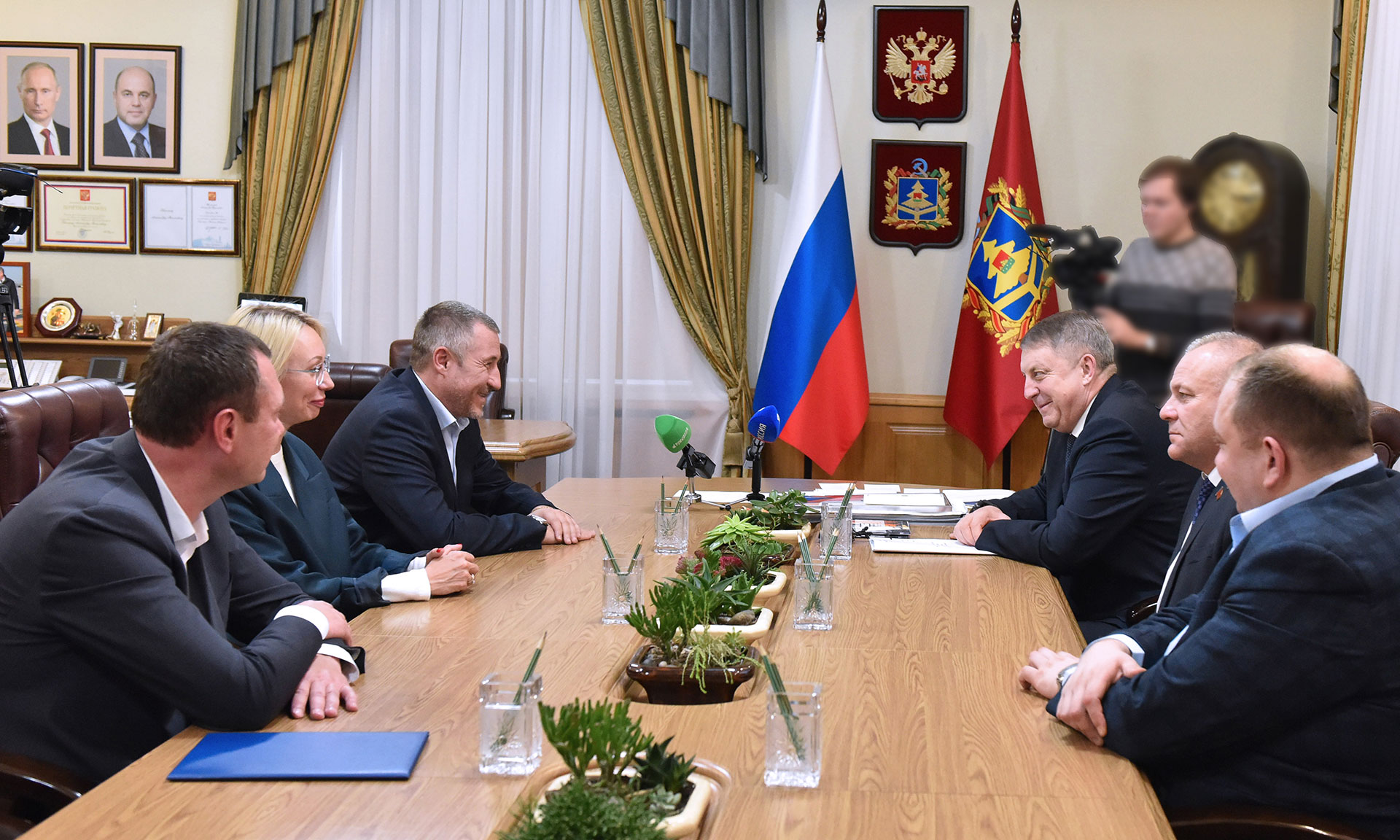 Во встрече также приняли участие председатель Брянской областной Думы Валентин Суббот, генеральный директор ООО «Эко-текс» Евгения Щербинина, директор АО «Брянская швейная фабрика» Сергей Халин, врио заместителя Губернатора Денис Амеличев.