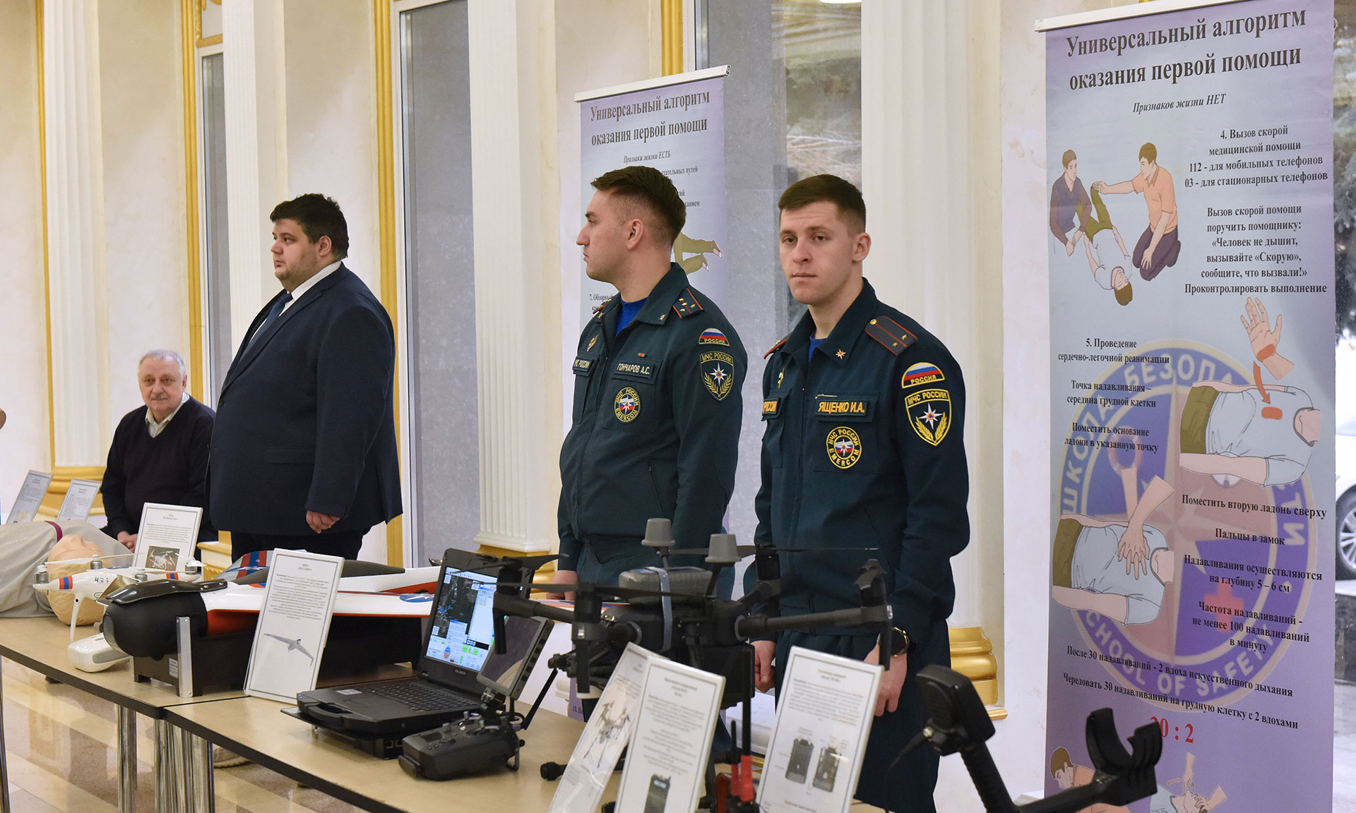 Перед подведением итогов деятельности территориальной подсистемы РСЧС Брянской области в фойе Хрустального зала была представлена выставка современных средств индивидуальной защиты, пожаротушения радиационного и химического мониторинга окружающей среды.